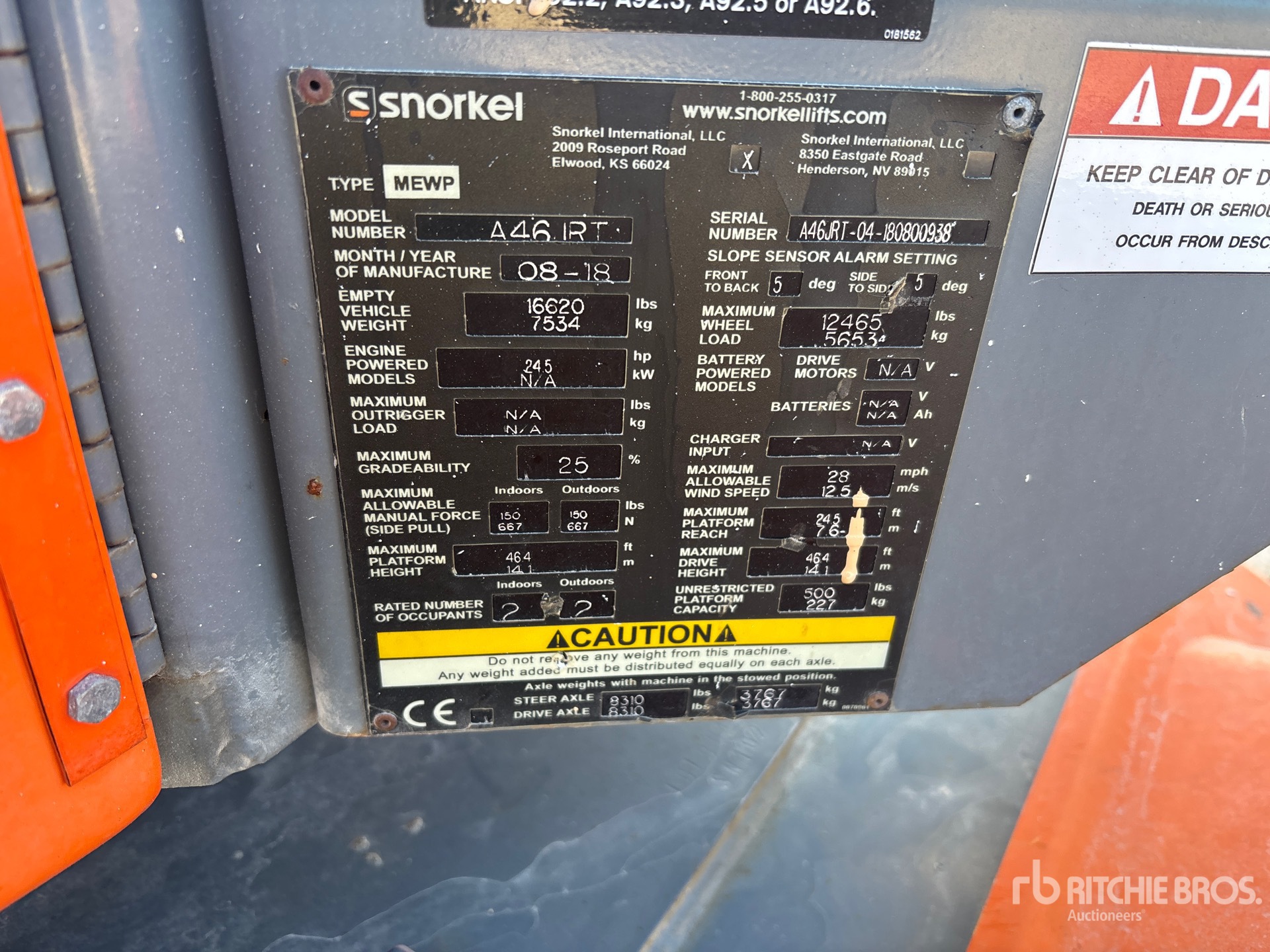 Please Be Aware That All Aerial Equipment Requires A Self-Supplied Safety Harness And Trained Personnel To Operate On All Ritchie Bros. Properties - On Lifts