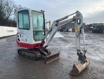 Enclosed Cab, Swing Boom, 1140 mm Stick, Auxiliary Hydraulic Plumbing, Backfill Blade, 230 mm Rubber Tracks, Expandable Width Tracks, Manual Quick Coupler, 990 mm Cleanup Bucket