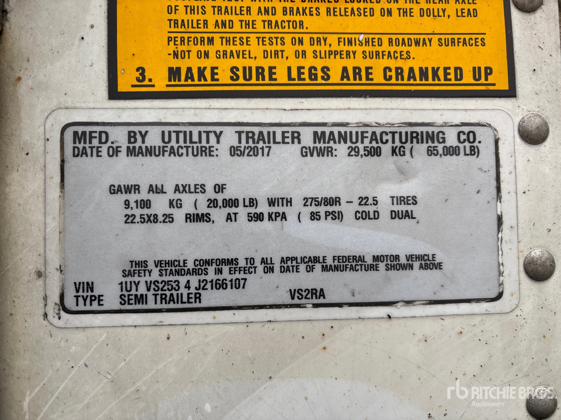 The detailed equipment information is limited in scope, and Ritchie Bros. Auctioneers has not inspected any aspects or components of the equipment other than those expressly set forth herein. Unless expressly stated, we make no representations or warranties, express or implied, concerning the equipment or its components, including without limitation any representations or warranties concerning functionality, conformity or compliance with any safety standard or requirement of any applicable authority or regulatory body, fitness for any particular purpose, or merchantability. You are strongly advised to perform your own detailed inspection of the equipment prior to bidding.