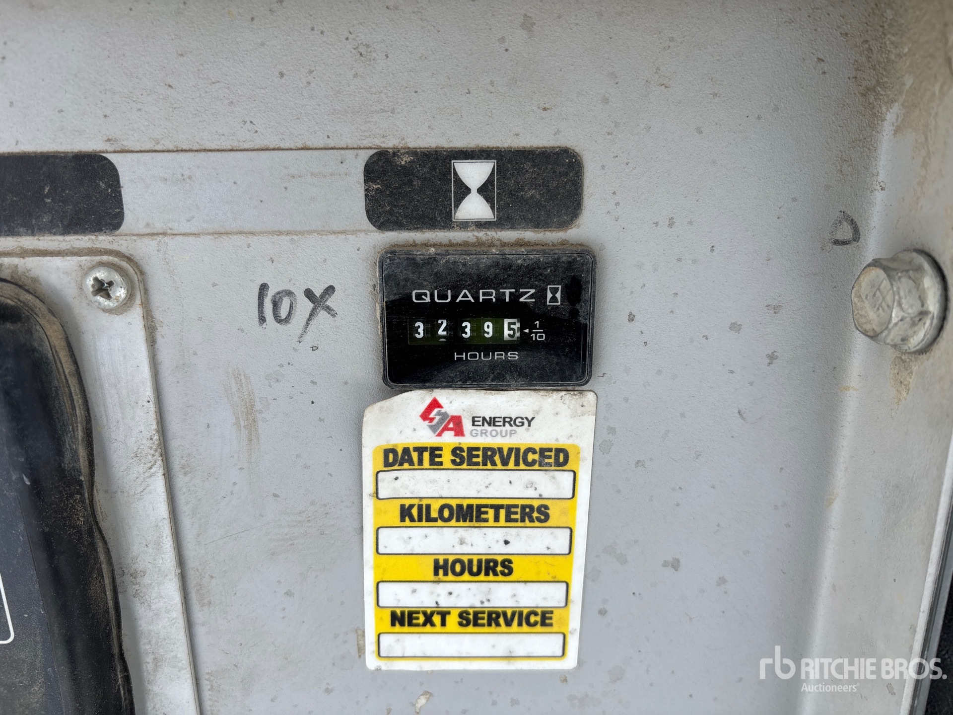 There is an hour meter replacement/change label that has the following reading on it: 10x