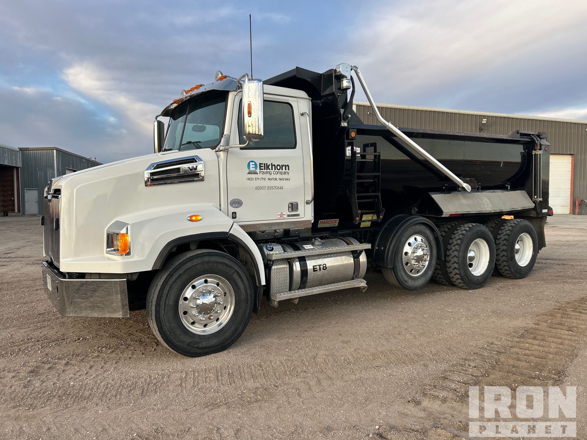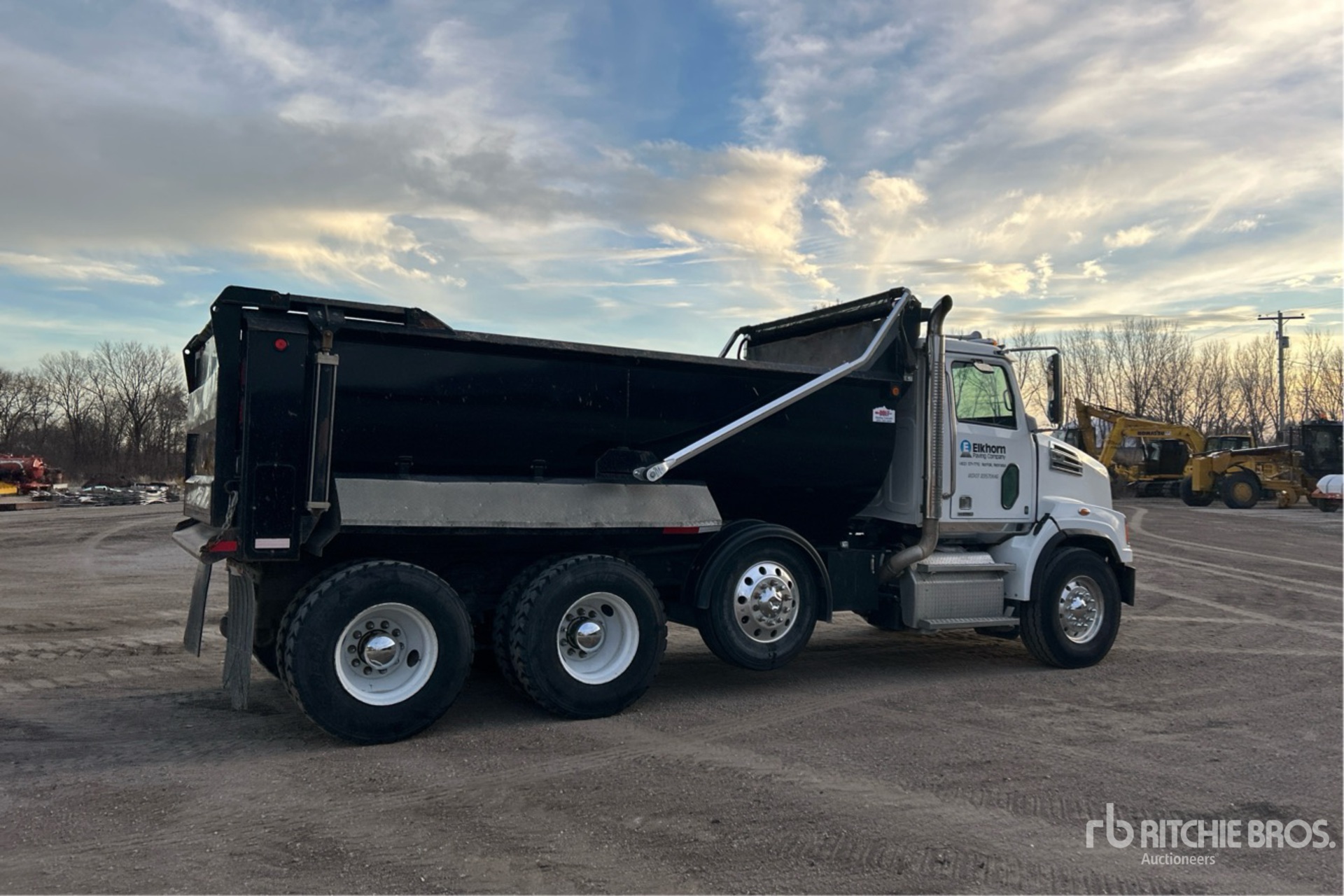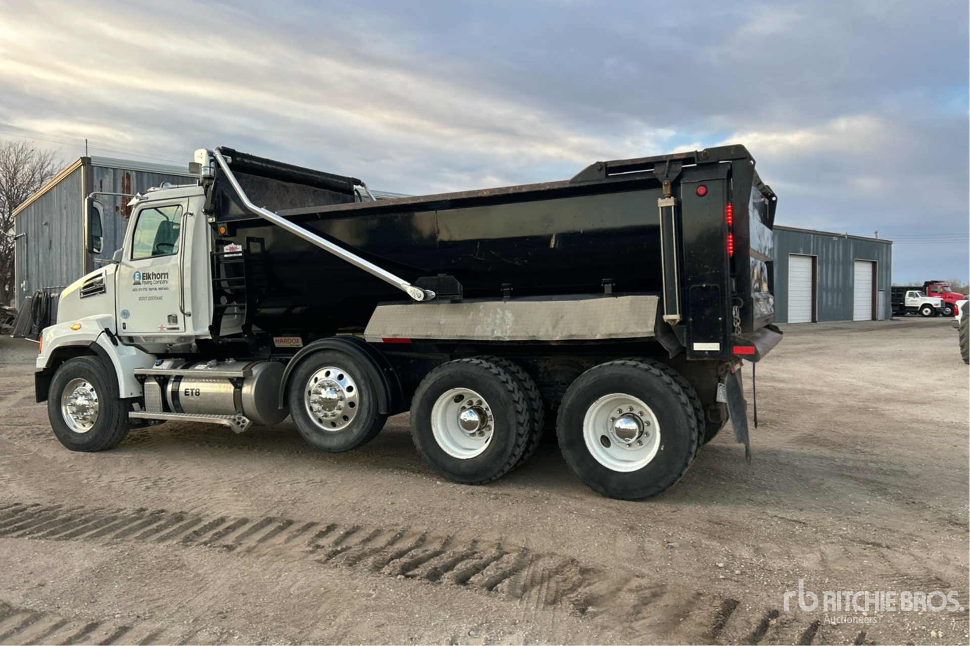 Detroit DD13 6 Cylinder 12.8 L Diesel 470 hp Engine, 2017 US EPA Label, Requires Diesel Exhaust Fluid, 3422 Engine hrs, Engine Brake, Allison 4000 6-Speed Automatic Transmission, Differential Lock, 18000 lb Front Axle, 40000 lb Rears, Meritor Mt40 14xp Drive Axles, 4.11:1 Axle Ratio, 58000 lb GVWR, Air Ride Cab, Aluminum Wheels, 425/65R22.5 Front Tires, 11R22.5 Rear Tires, Steerable Air Lift Pusher Axle, TufTrac Rubber over Walking Beam Suspension, 210 in Wheelbase, PTO, 16 ft Long x 4 ft High Steel Body, Round Bottom, Bed Vibrator, Electric Roll Tarp, High-Lift Tailgate, Pintle Hitch