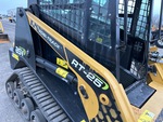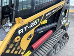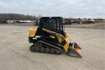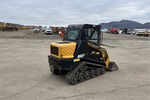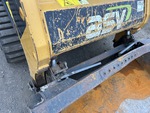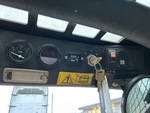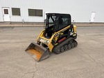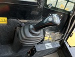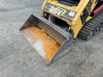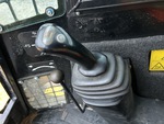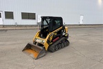 Enclosed Cab (Door missing), Joystick Steering, 11 in Track Belts, Manual Coupler, 48 in Bucket