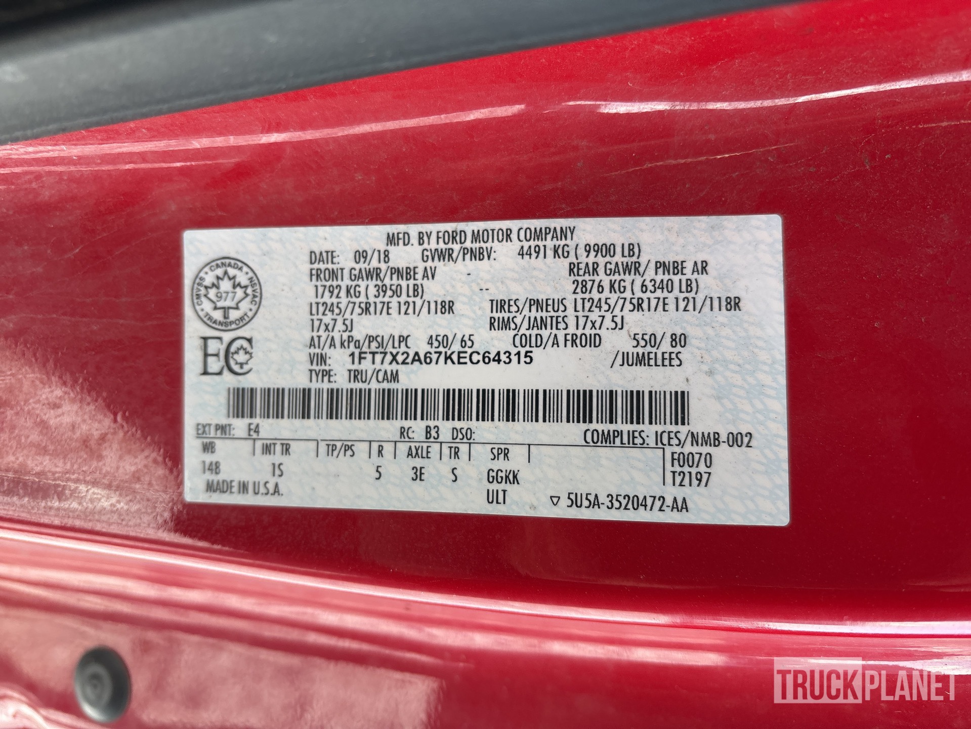 6.2 L V8 Gasoline Engine, 2019 US EPA Label, CARB Compliant, Automatic Transmission, Air Conditioner, Power Windows, Spray-On Bed Liner, 9900 lb GVWR, 245/75R17 Tires, 6 ft 4 in Bed
