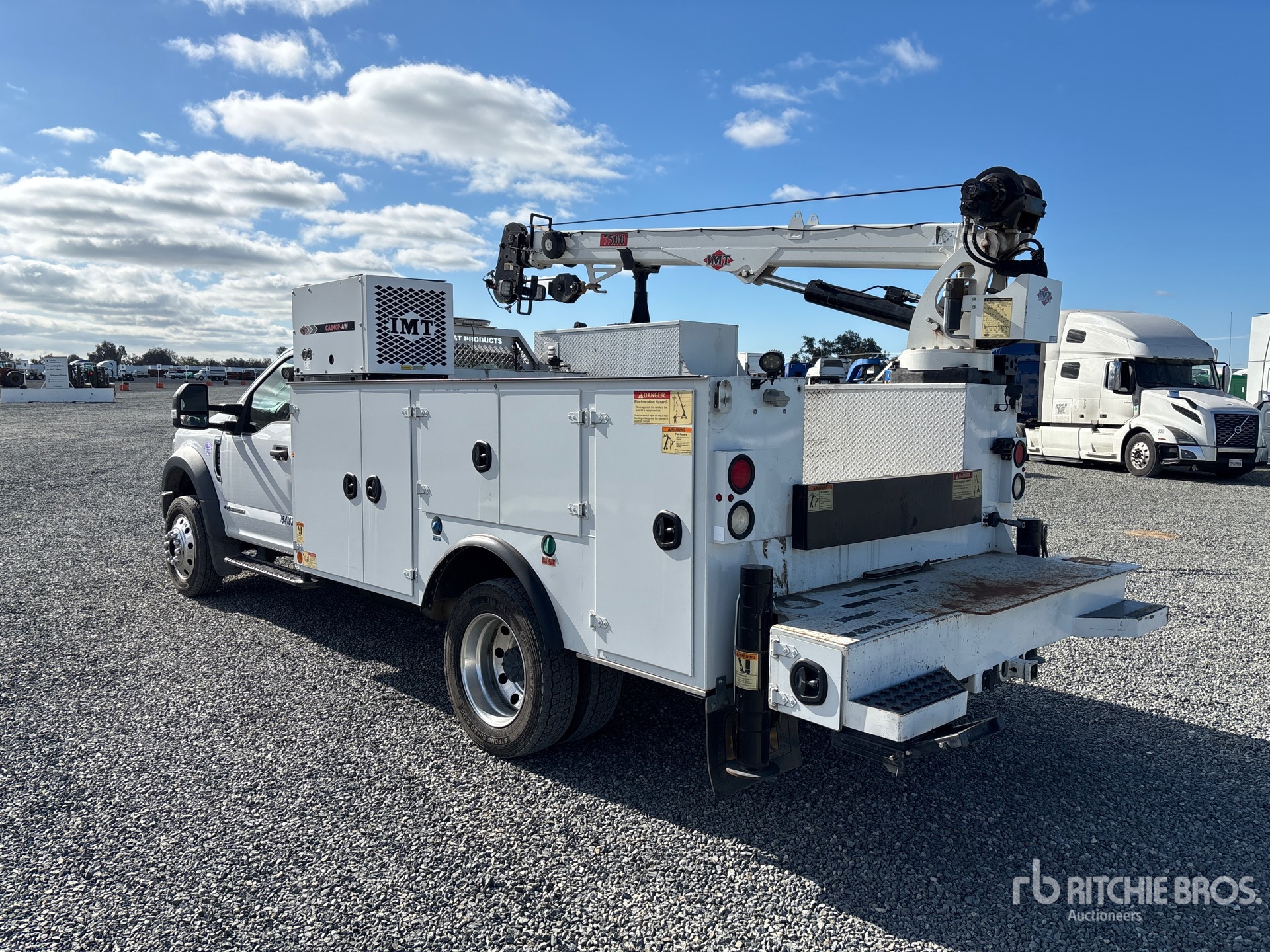 V8 6.7 L Diesel Engine, US EPA Label, Requires Diesel Exhaust Fluid, Automatic Transmission, 6500 lb Front Axle, 14706 lb Rears, 19500 lb GVWR, 225/70R19.5, Spring Suspension, 169 in Wheelbase, 13 ft 6 in Body, IMT 7500 3 Section Hydraulic Crane, Wired Remote Control, CAS40P-AW Air Compressor