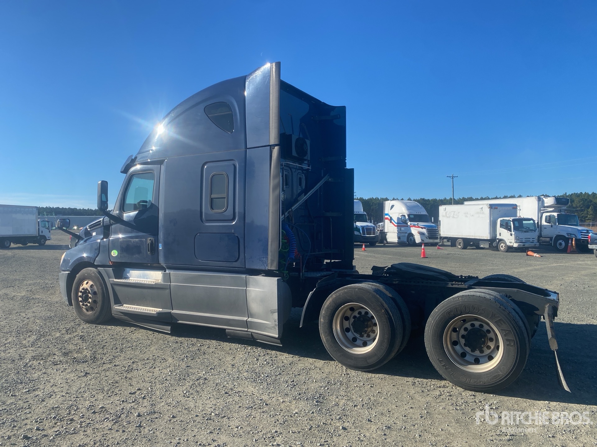 Detroit DD15 400 hp Engine, 2018 US EPA Label, 18972 Engine hrs, Detroit DT12-1750-DH1 12-Speed Automated Transmission, 12350 lb Front Axle, 40000 lb Rears, 52350 lb GVWR, Engine Brake, 60 in High Rise Sleeper Cab, Bunk Beds, Auxiliary Power Unit, 225 in Wheelbase, Air Suspension, 295/75R22.5, Air Sliding 5th Wheel, Dual Fuel Tanks