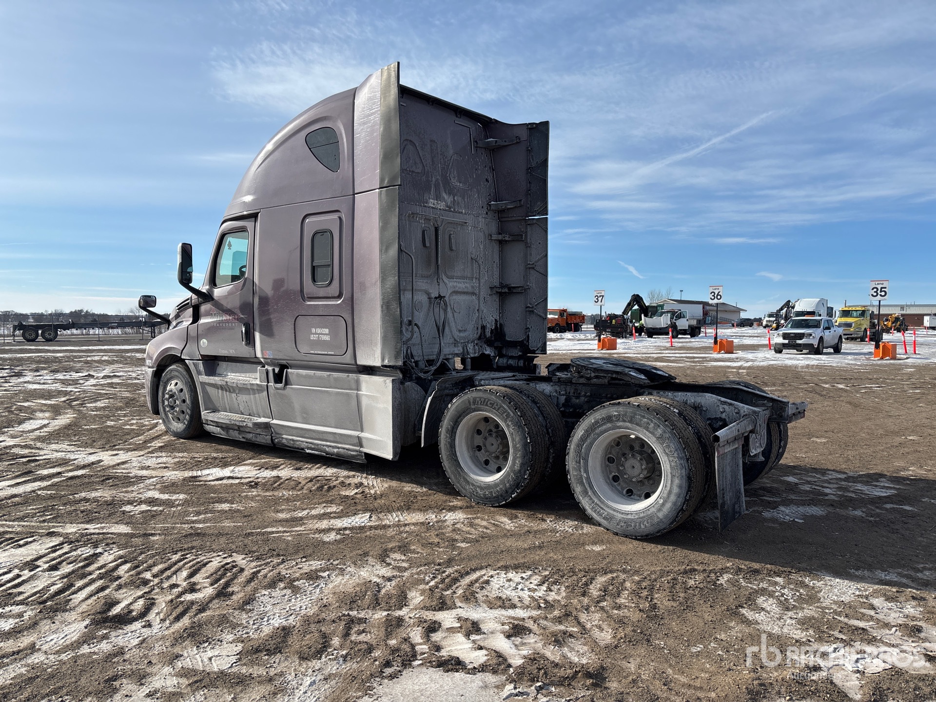 Located in Lane 26 Spot 58, Detroit DD15 475 hp Engine, 2018 US EPA Label, 22017 Engine hrs, Detroit DT12-1650-OH1 12-Speed Automated Transmission, 12500 lb Front Axle, 40000 lb Rears, 52500 lb GVWR, High Rise Sleeper Cab, 223 in Wheelbase, Air Suspension, Aluminum Wheels, 275/80R22.5, Air Sliding 5th Wheel, Dual Fuel Tanks