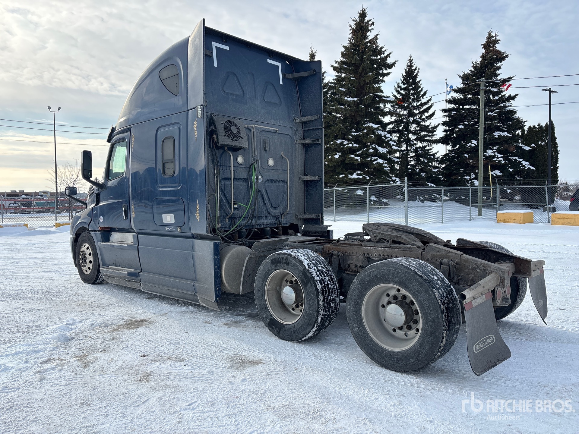 Detroit DD15 505 hp Engine, 2018 US EPA Label, 14384 Engine hrs, Detroit DT12-1750-OH1 12-Speed Automated Transmission, 12500 lb Front Axle, 40000 lb Rears, 23814 kg GVWR, Engine Brake, Double Differential Locks, 60 in Condo Sleeper Cab, Bunk Beds, Bunk Heater, 229 in Wheelbase, Air Suspension, Aluminum Wheels, 11R22.5 Front Tires, 445/50R22.5 Super Singles Rear Tires, Air Sliding 5th Wheel, Dual Fuel Tanks