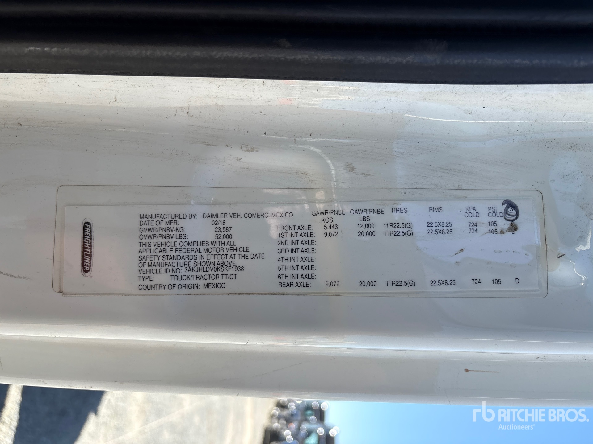 Located in Lane 3 Spot 24, Detroit DD13 525 hp Engine, 2018 US EPA Label, 12000 lb Front Axle, 40000 lb Rears, 52000 lb GVWR, 180 in Wheelbase, Air Suspension, 11R22.5 Front Tires, 22.5-8.25 Rear Tires, Wet Kit, Air Sliding 5th Wheel, Dual Fuel Tanks