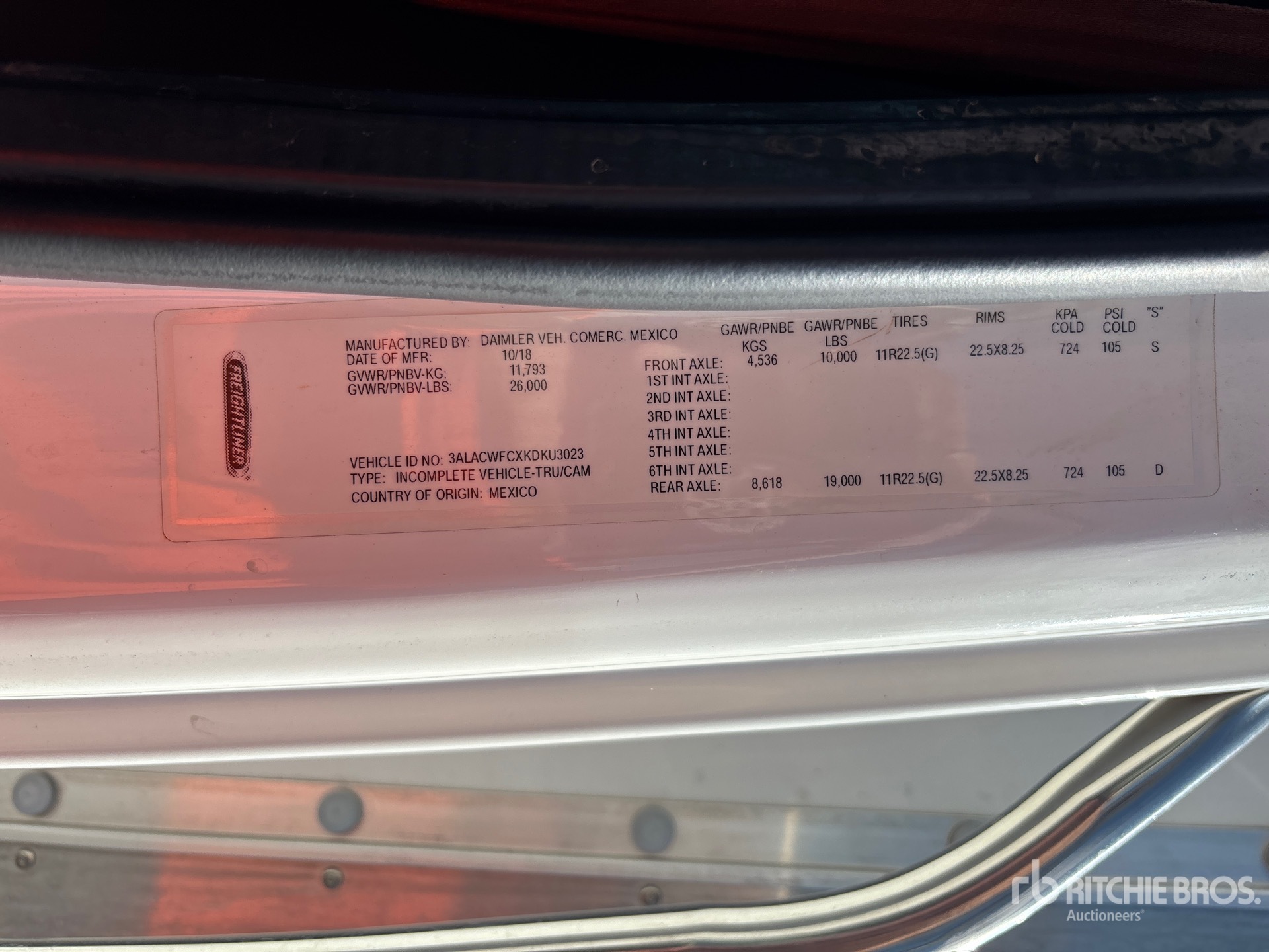 The detailed equipment information is limited in scope, and Ritchie Bros. Auctioneers has not inspected any aspects or components of the equipment other than those expressly set forth herein. Unless expressly stated, we make no representations or warranties, express or implied, concerning the equipment or its components, including without limitation any representations or warranties concerning functionality, conformity or compliance with any safety standard or requirement of any applicable authority or regulatory body, fitness for any particular purpose, or merchantability. You are strongly advised to perform your own detailed inspection of the equipment prior to bidding.
