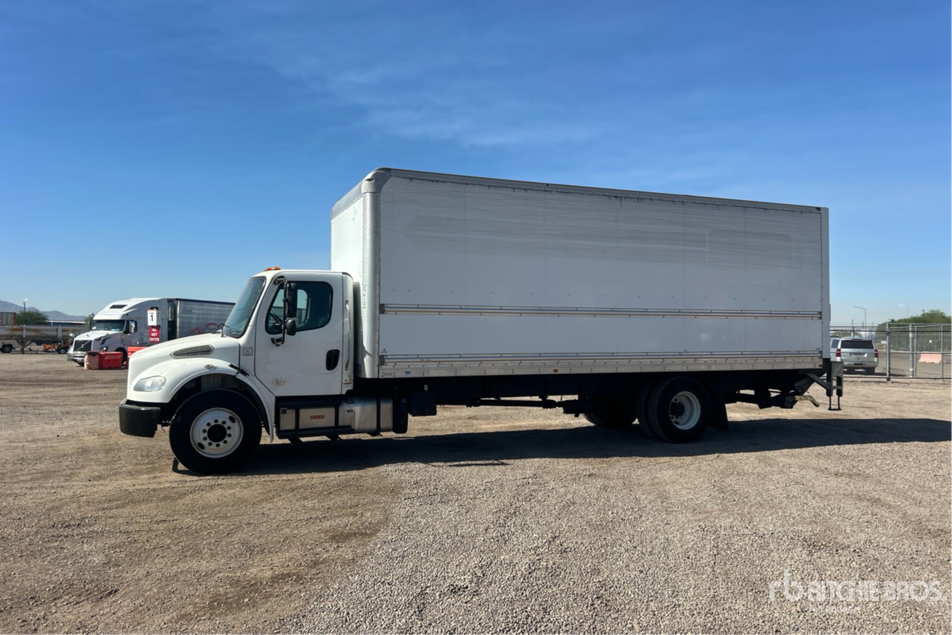 Located in Lane 19 Spot 7, Detroit DD5 4 Cylinder 5.1 L Diesel 230 hp Engine, 2018 US EPA Label, Requires Diesel Exhaust Fluid, 7856 Engine hrs, Allison Automatic Transmission, 10000 lb Front Axle, 19000 lb Rears, Meritor Drive Axles, 26000 lb GVWR, 11R22.5, Airliner Air Ride Suspension, 270 in Wheelbase, Supreme 26 ft x 102 in Wide x 103 in High Body, Liftgate, Professionally-Maintained-Fleet-Vehicle-PAG