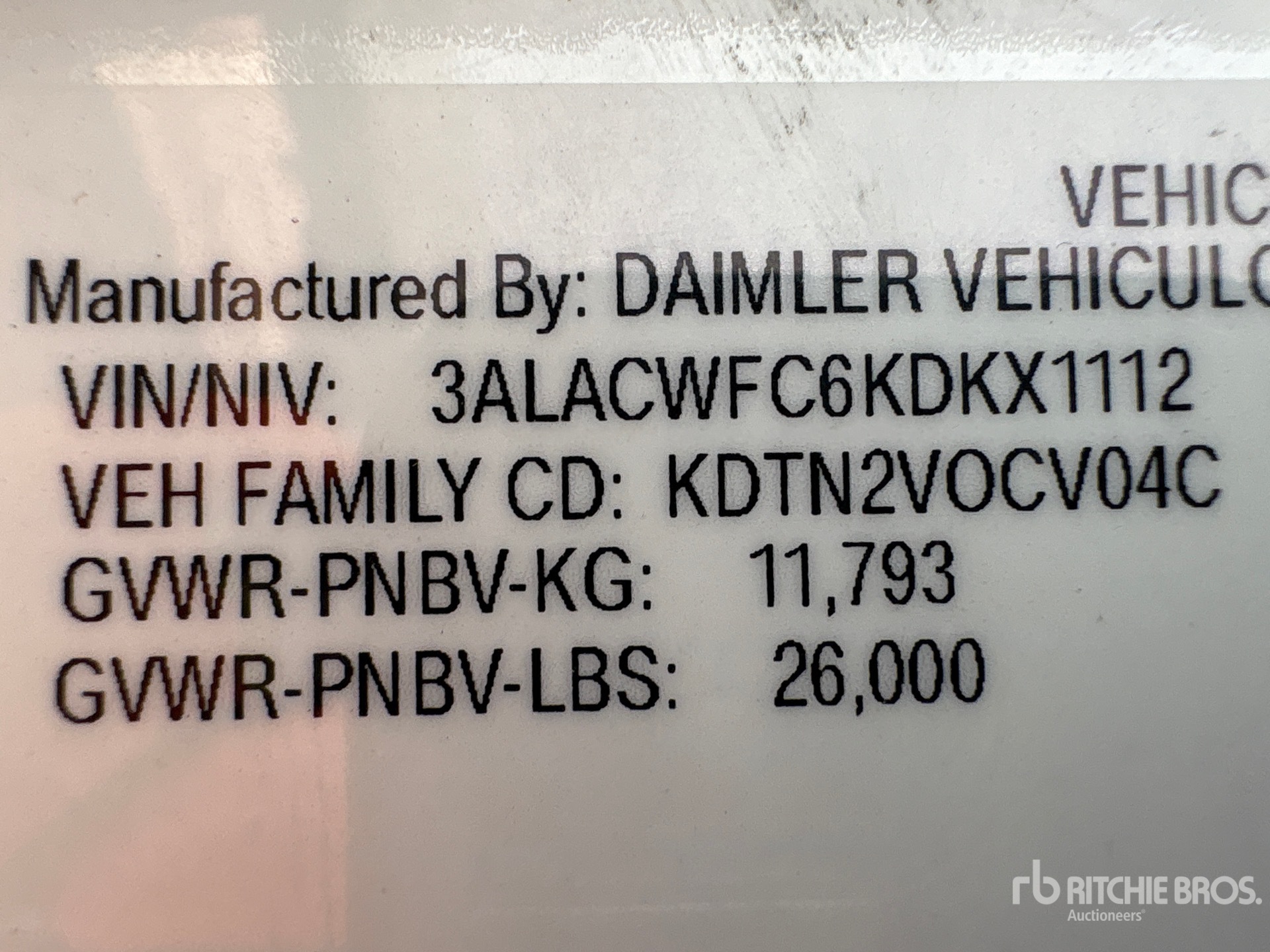 The detailed equipment information is limited in scope, and Ritchie Bros. Auctioneers has not inspected any aspects or components of the equipment other than those expressly set forth herein. Unless expressly stated, we make no representations or warranties, express or implied, concerning the equipment or its components, including without limitation any representations or warranties concerning functionality, conformity or compliance with any safety standard or requirement of any applicable authority or regulatory body, fitness for any particular purpose, or merchantability. You are strongly advised to perform your own detailed inspection of the equipment prior to bidding.