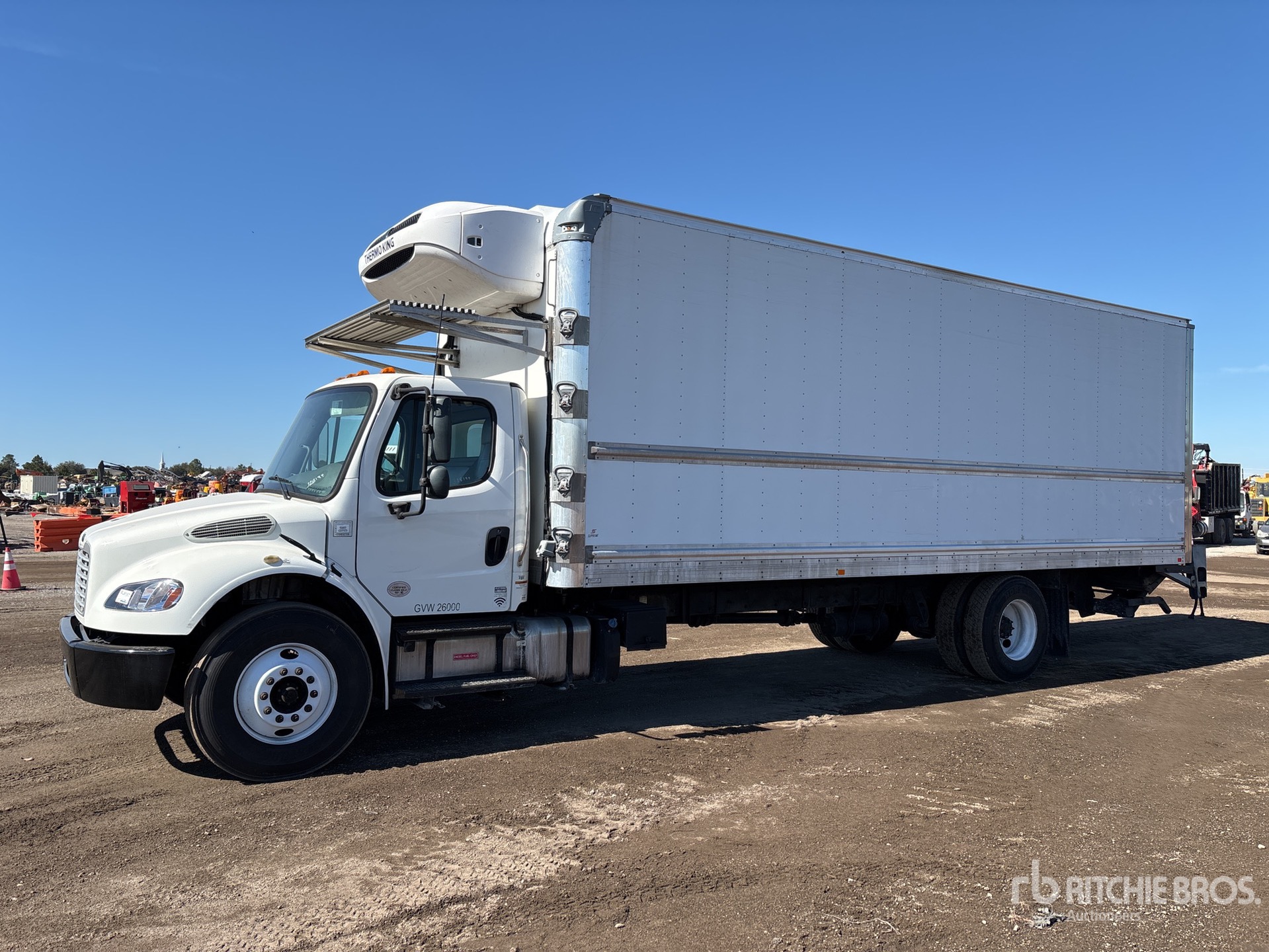 Located in Spot 50, Cummins B6.7 6 Cylinder 6.7 L Diesel 220 hp Engine, 2018 US EPA Label, Requires Diesel Exhaust Fluid, 10202 Engine hrs, Allison 2200 Automatic Transmission, 10000 lb Front Axle, 19000 lb Rears, Meritor MS-19-14X Drive Axles, 5.29:1 Axle Ratio, 26000 lb GVWR, 11R22.5, Airliner Air Ride Suspension, 270 in Wheelbase, Thermo King Reefer Unit, 10837 Reefer Total Hours:, Standby Power, Supreme 26 ft x 102 in Wide x 103 in High Body, Curbside Door, Professionally-Maintained-Fleet-Vehicle-PAG