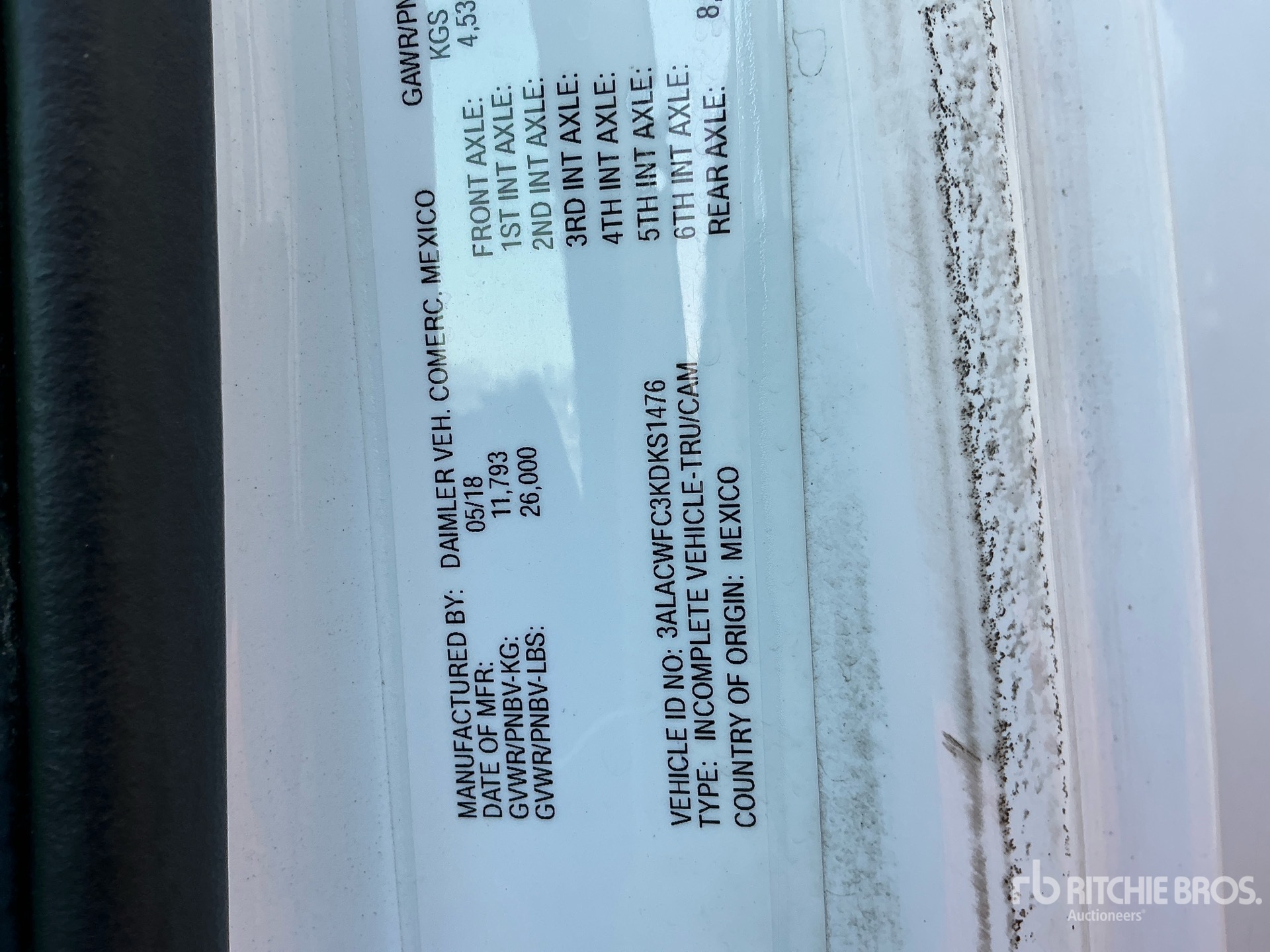 The detailed equipment information is limited in scope, and Ritchie Bros. Auctioneers has not inspected any aspects or components of the equipment other than those expressly set forth herein. Unless expressly stated, we make no representations or warranties, express or implied, concerning the equipment or its components, including without limitation any representations or warranties concerning functionality, conformity or compliance with any safety standard or requirement of any applicable authority or regulatory body, fitness for any particular purpose, or merchantability. You are strongly advised to perform your own detailed inspection of the equipment prior to bidding.