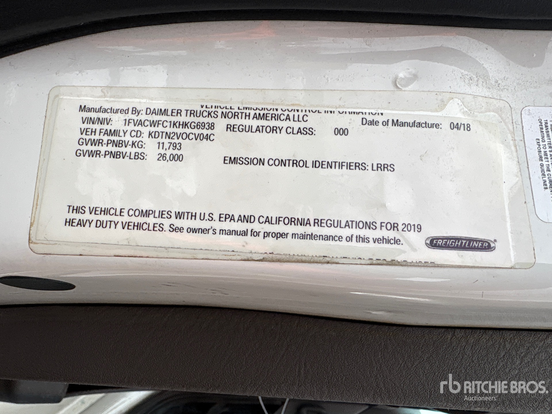 Cummins B6.7 6 Cylinder 6.7 L Diesel 240 hp Engine, 2019 US EPA Label, Allison 2100 Automatic Transmission, 10000 lb Front Axle, 17500 lb Rears, Meritor MS-17-14X Drive Axles, 5.86:1 Axle Ratio, 26000 lb GVWR, 295/75R22.5 Front Tires, 295/75R22.5 Rear Tires, Air Ride Suspension, 270 in Wheelbase, Morgan 26 ft x 102 in Wide x 103 in High Body