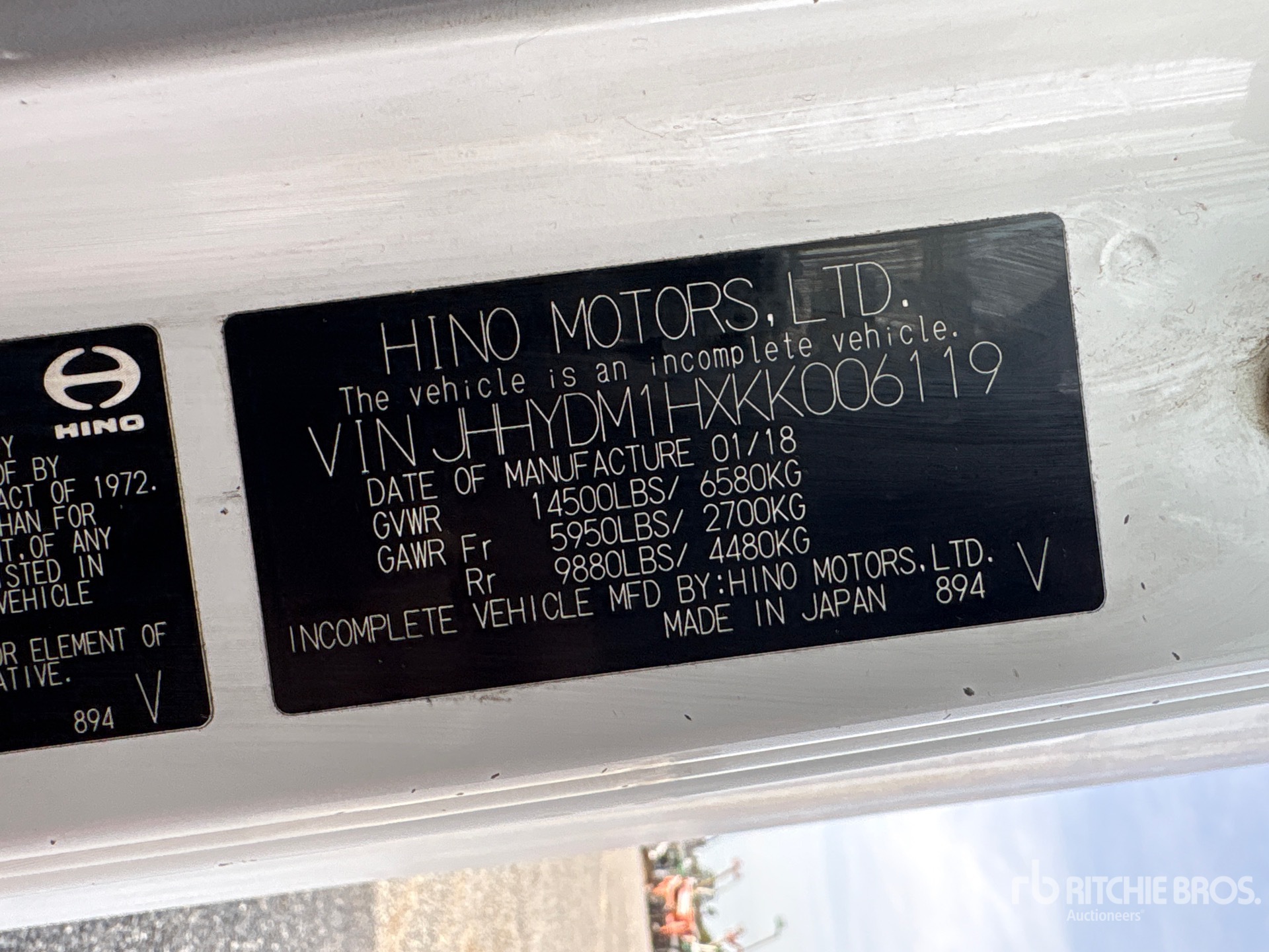 Located in Lane 35 Spot 34, Hino J05E-TP 4 Cylinder Diesel Engine, 2018 US EPA Label, Requires Diesel Exhaust Fluid, Automatic Transmission, 5950 lb Front Axle, 9880 lb Rears, 14500 lb GVWR, 215/75R17.5, Spring Suspension, 157 in Wheelbase, Supreme 15 ft x 96 in Wide x 71 in High Body, Liftgate