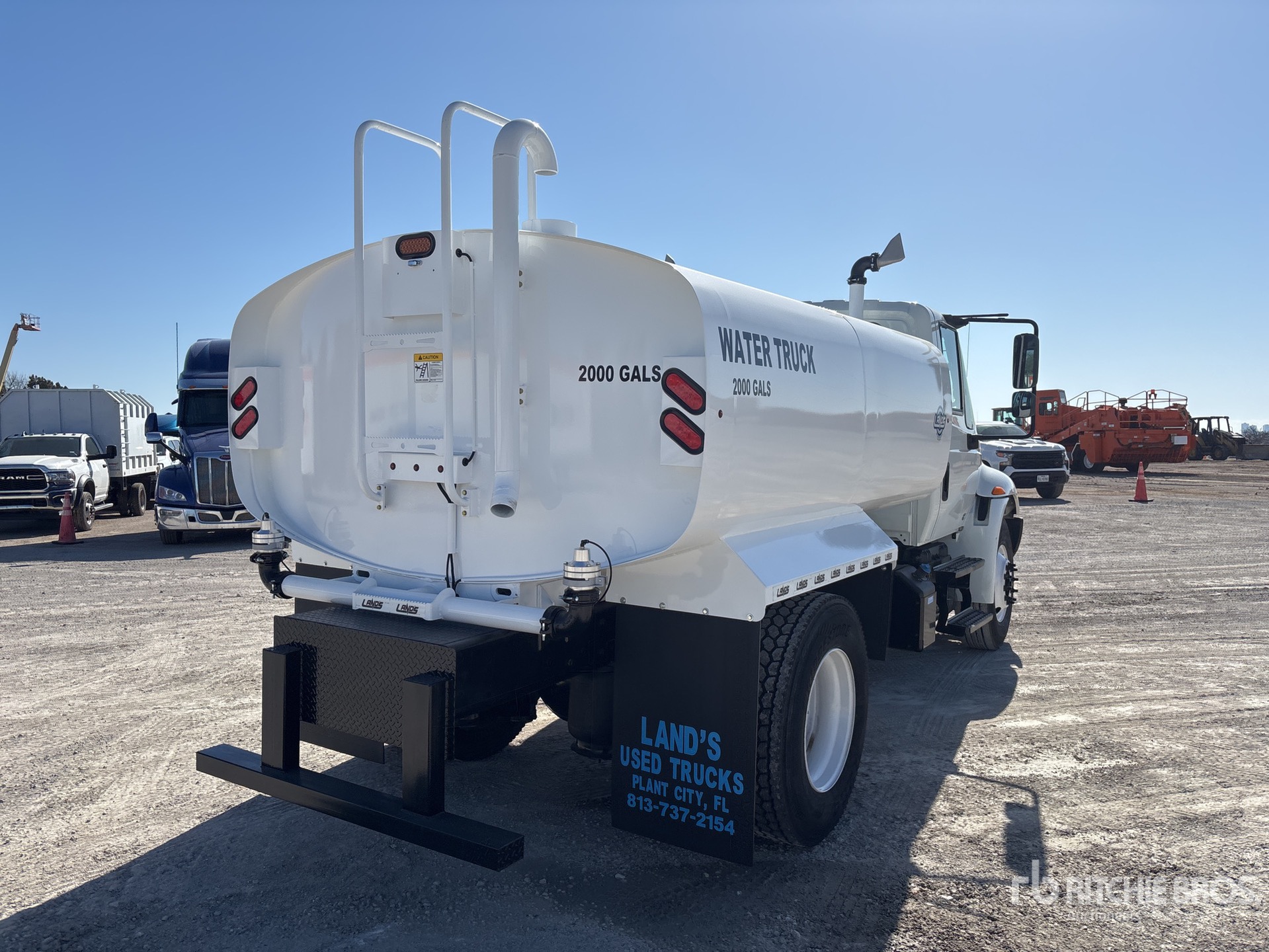 Cummins B6.7 220 6.7 L Diesel 220 hp Engine, 2018 US EPA Label, Requires Diesel Exhaust Fluid, Eaton Fuller Automatic Transmission, 12000 lb Front Axle, 21000 lb Rears, 33000 lb GVWR, 11R22.5, Air Ride Suspension, 158 in Wheelbase, PTO, Land's Unused Powder Coated 2000 gal Tank, PTO Driven Pump, 5 ft 4 in, Spray Bar, Front Spray, Rear Spray, Side Spray