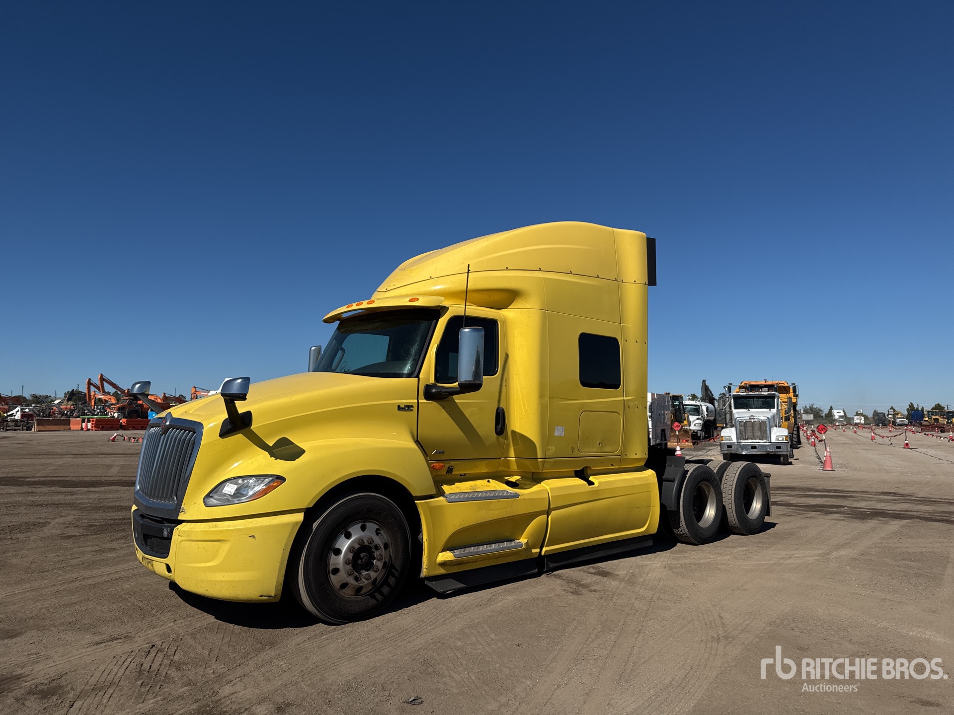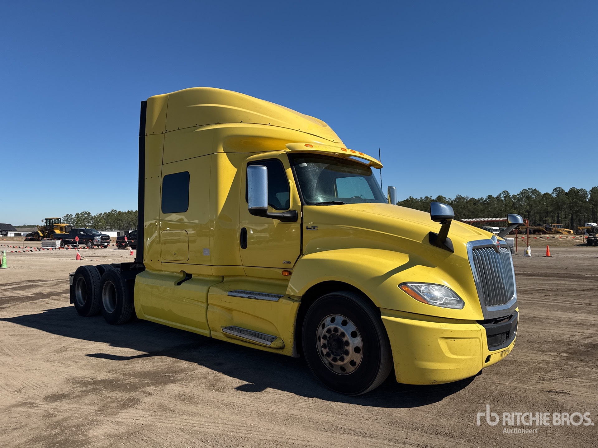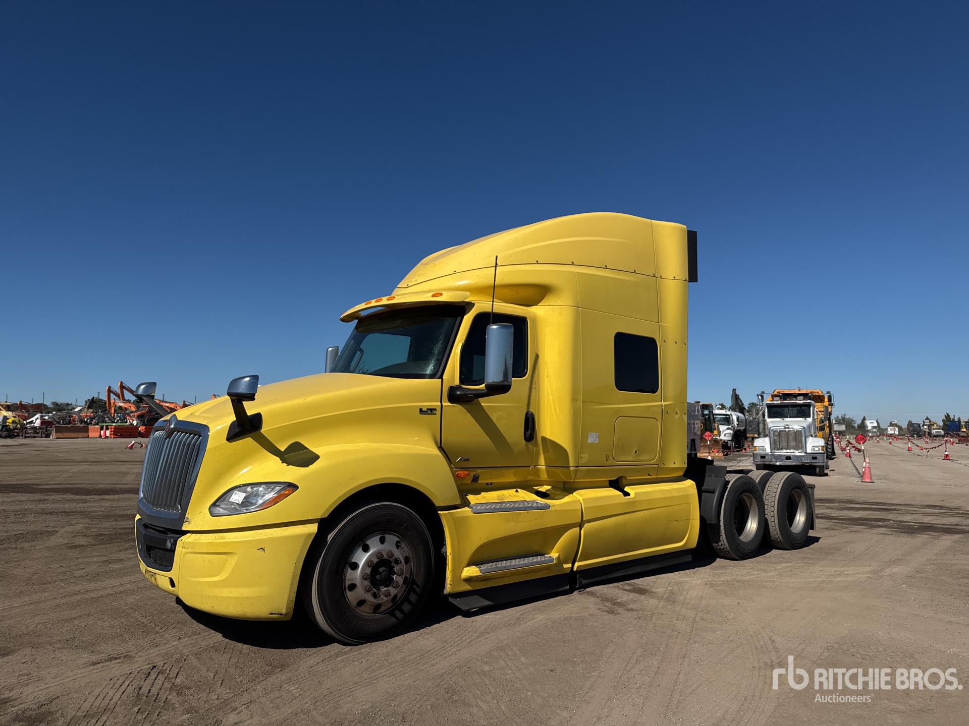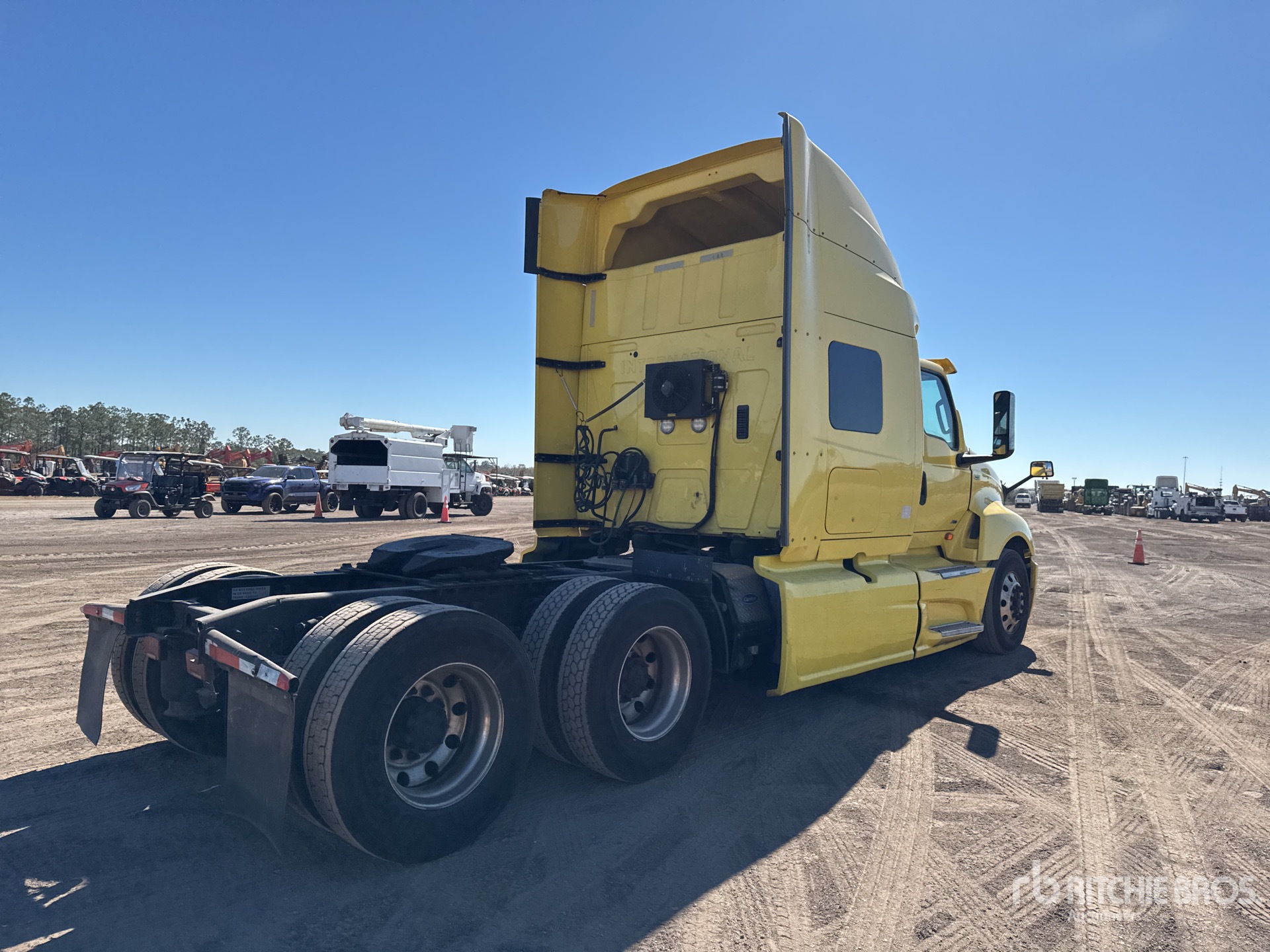 Located in Spot 21, International A26 Engine, 9522 Engine hrs, Automated Transmission, 12350 lb Front Axle, 40000 lb Rears, 52350 lb GVWR, 73 in Mid Roof Sleeper Cab, Bunk Beds, Bunk Heater, Auxiliary Power Unit, 230 in Wheelbase, Air Suspension, Aluminum Wheels, 295/75R22.5 Front Tires, 295/75R22.5 Rear Tires, Air Sliding 5th Wheel, Dual Fuel Tanks