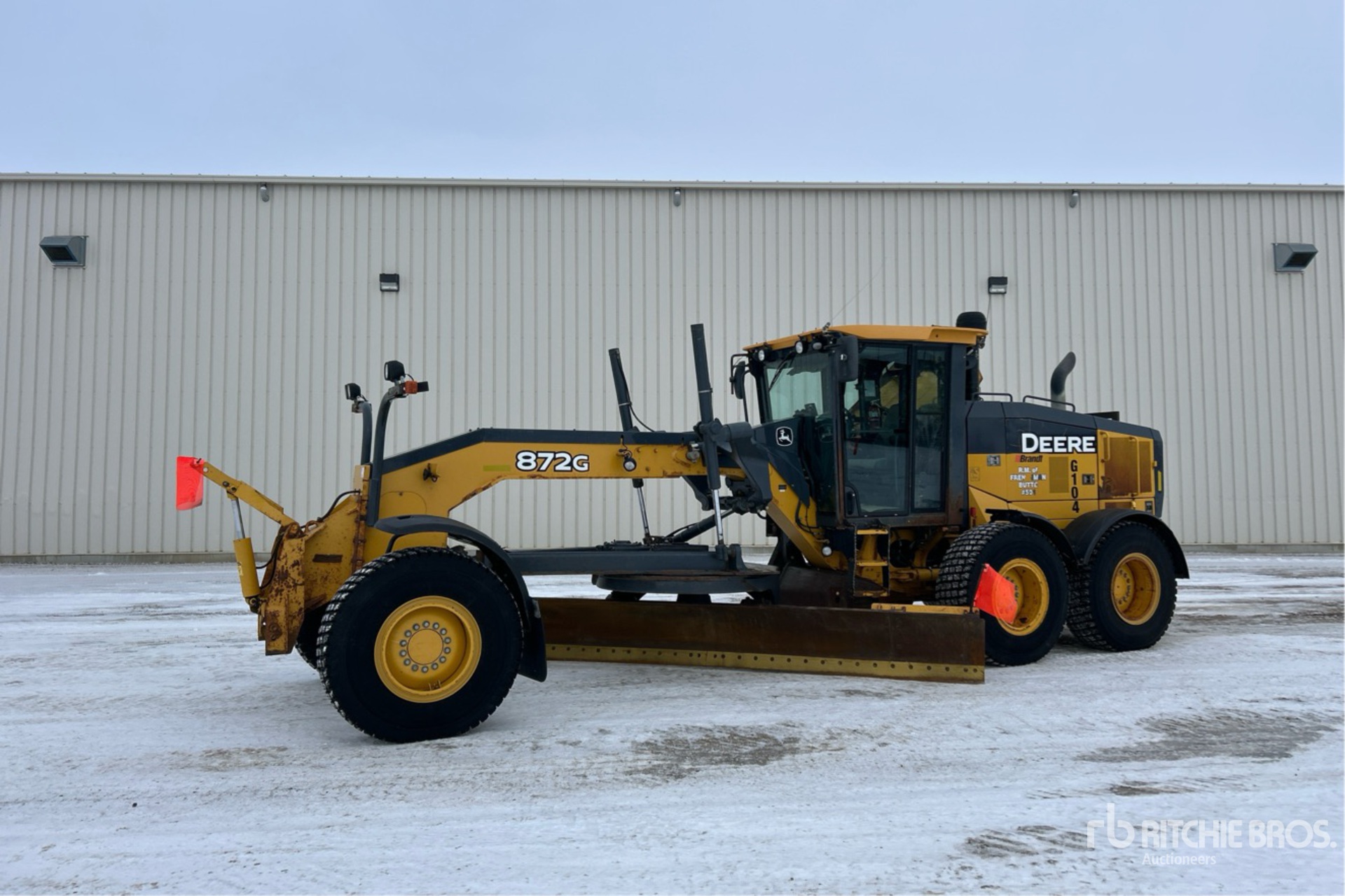 Enclosed Cab, Air Conditioner, Air Ride Seat, Differential Lock, Requires Diesel Exhaust Fluid, 14 ft / 4.27 m Moldboard w/ 2 ft Extension, Front Auxiliary Hydraulics, Snow Wing, 17.5R25 Tires