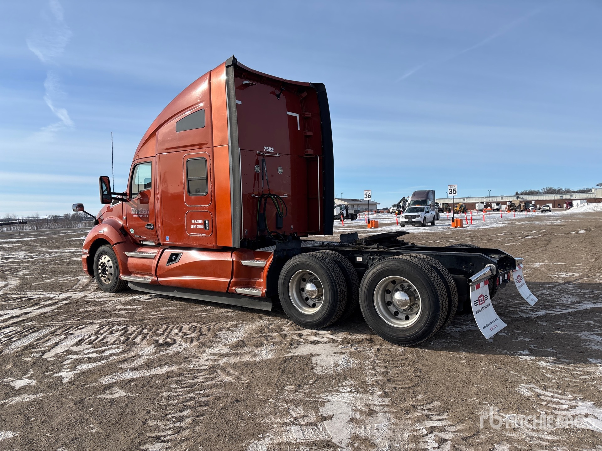 Located in Lane 26 Spot 57, Paccar MX-13 455 hp Engine, 2018 US EPA Label, 24493 Engine hrs, Eaton Fuller FAO-16810C 10-Speed Manual, 12350 lb Front Axle, 40000 lb Rears, 52350 lb GVWR, Engine Brake, 72 in High Rise Sleeper Cab, Bunk Beds, 229 in Wheelbase, Air Suspension, Aluminum Wheels, 275/80R22.5 Front Tires, 295/75R22.5 Rear Tires, Air Sliding 5th Wheel, Dual Fuel Tanks