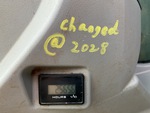There is an hour meter replacement/change label that has the following reading on it: 2028