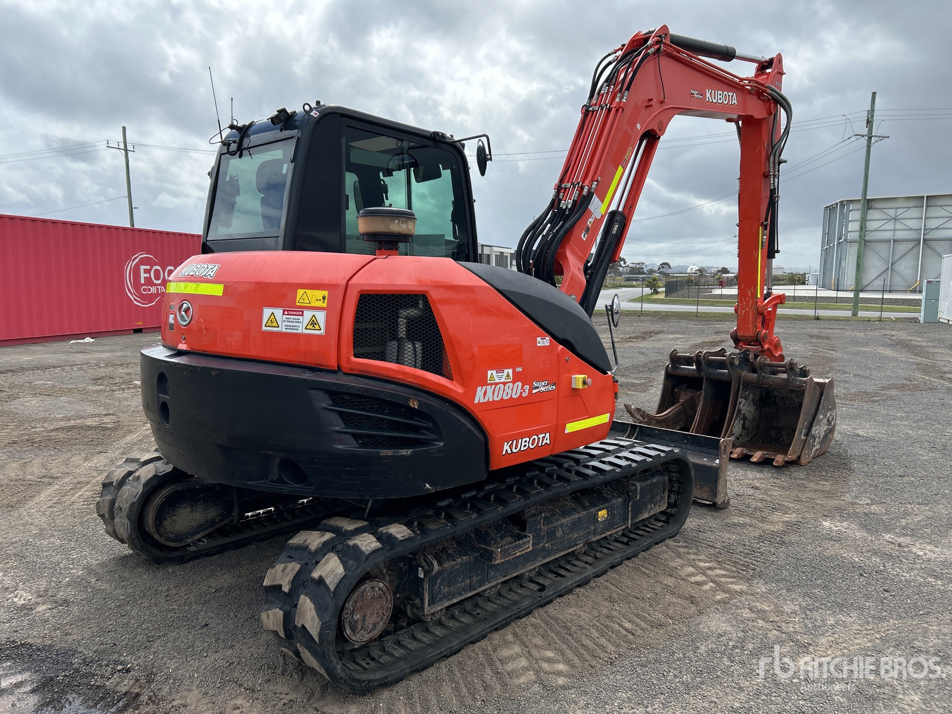 Enclosed Cab, Air Conditioner, Control Pattern Changer, Rear View Camera, E-Stops, Swing Boom, 2100 mm Stick, Auxiliary Hydraulic Plumbing, Boom Check Valves, Backfill Blade, 450 mm Rubber Tracks, Hydraulic Quick Coupler, 1500 mm Cleanup Bucket, Additional 600 mm Digging Bucket, 450mm Digging Bucket, 300mm Digging Bucket, Ripper, Focus Machinery