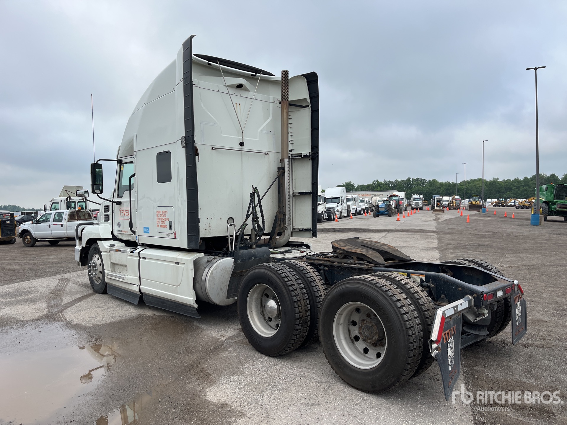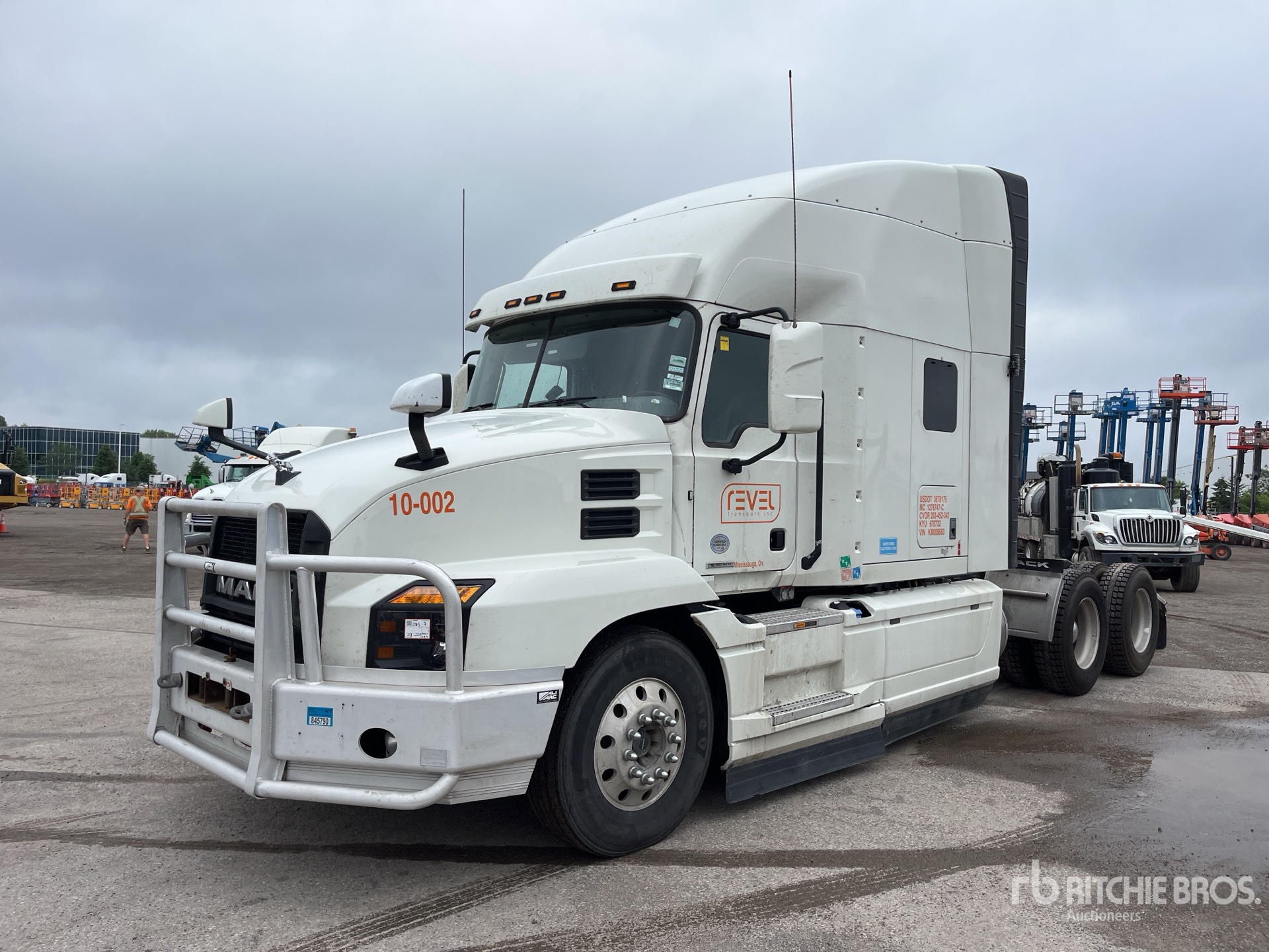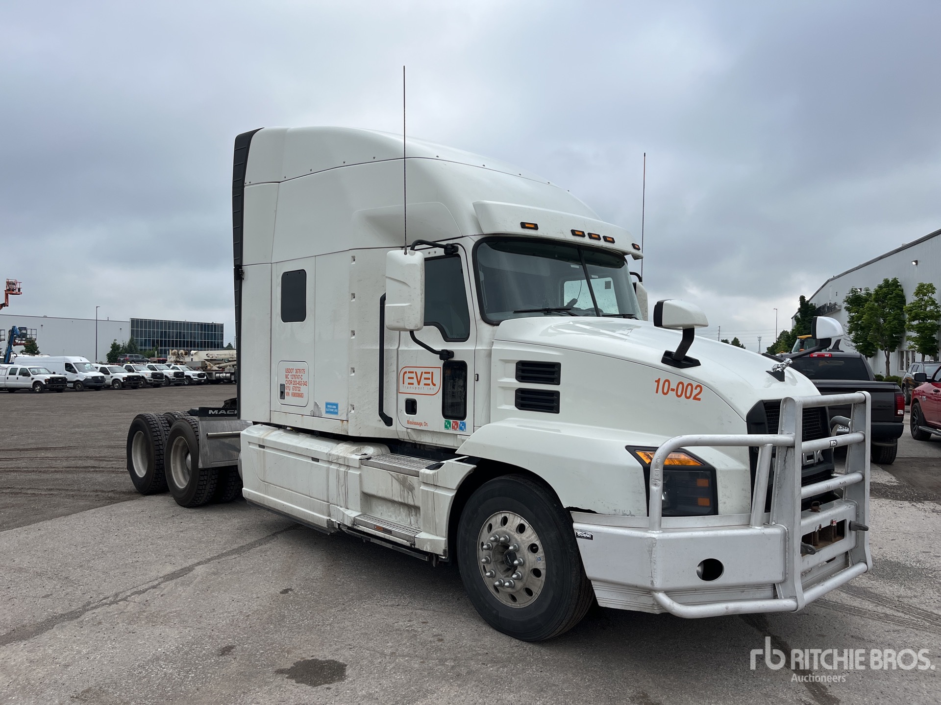 Mack MP8 6 Cylinder 12.8 L Diesel 445 hp Engine, 2018 US EPA Label, CARB Compliant, Requires Diesel Exhaust Fluid, 17497 Engine hrs, Engine Brake, Automatic Transmission, Differential Lock, 5400 kg Front Axle, 18200 kg Rears, 23600 kg GVWR, Air Ride Cab, 70 in High Rise Sleeper Cab, Bunk Beds, Bunk Heater, Aluminum Wheels, 11R22.5 Front Tires, 295/75R22.5 Rear Tires, Air Ride Suspension, 228 in Wheelbase, Air Sliding 5th Wheel, Dual Fuel Tanks