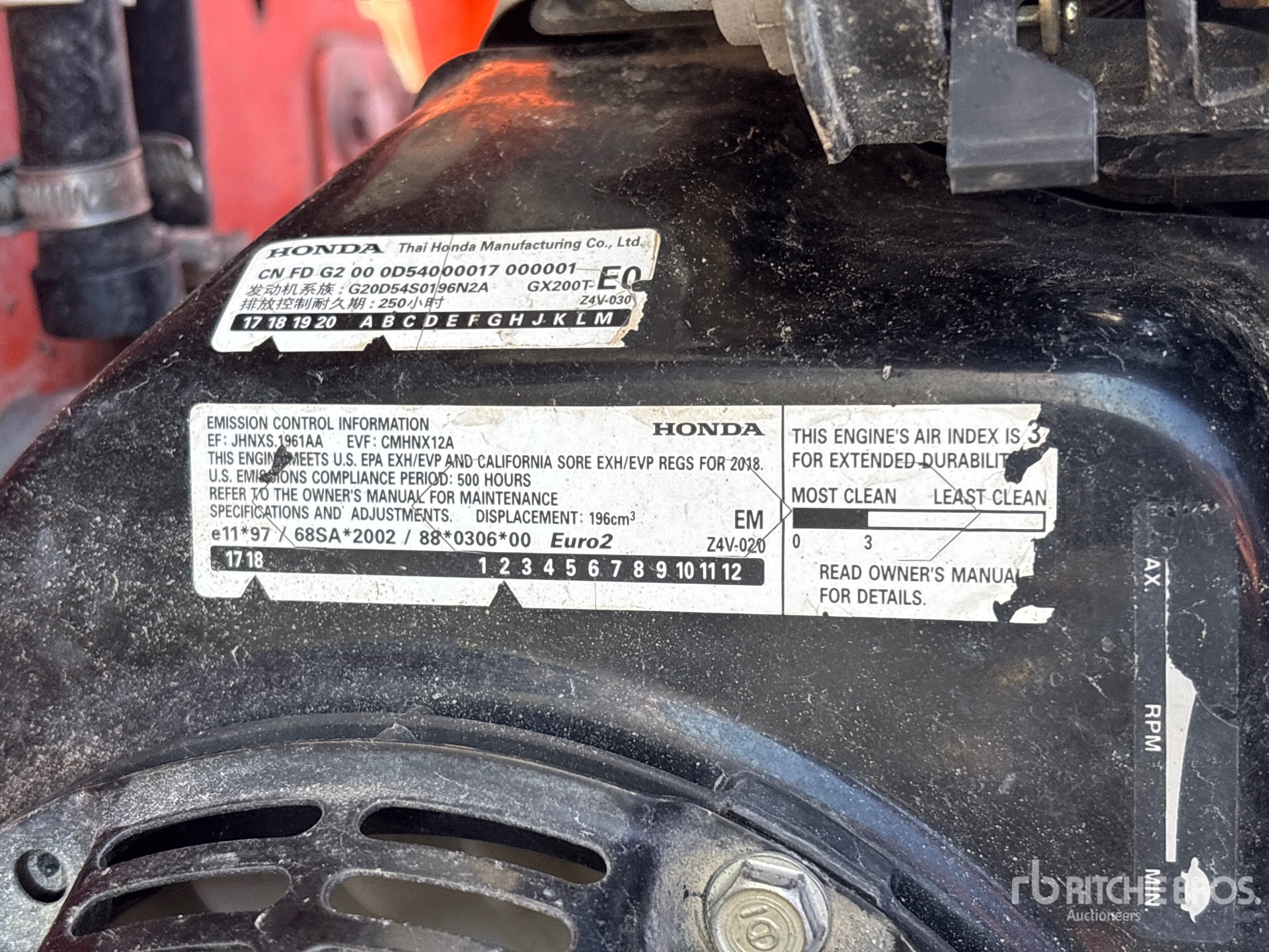 2020 US EPA Label, CARB Compliant, Honda GX200 4.3 kW 196 cc Gasoline Engine