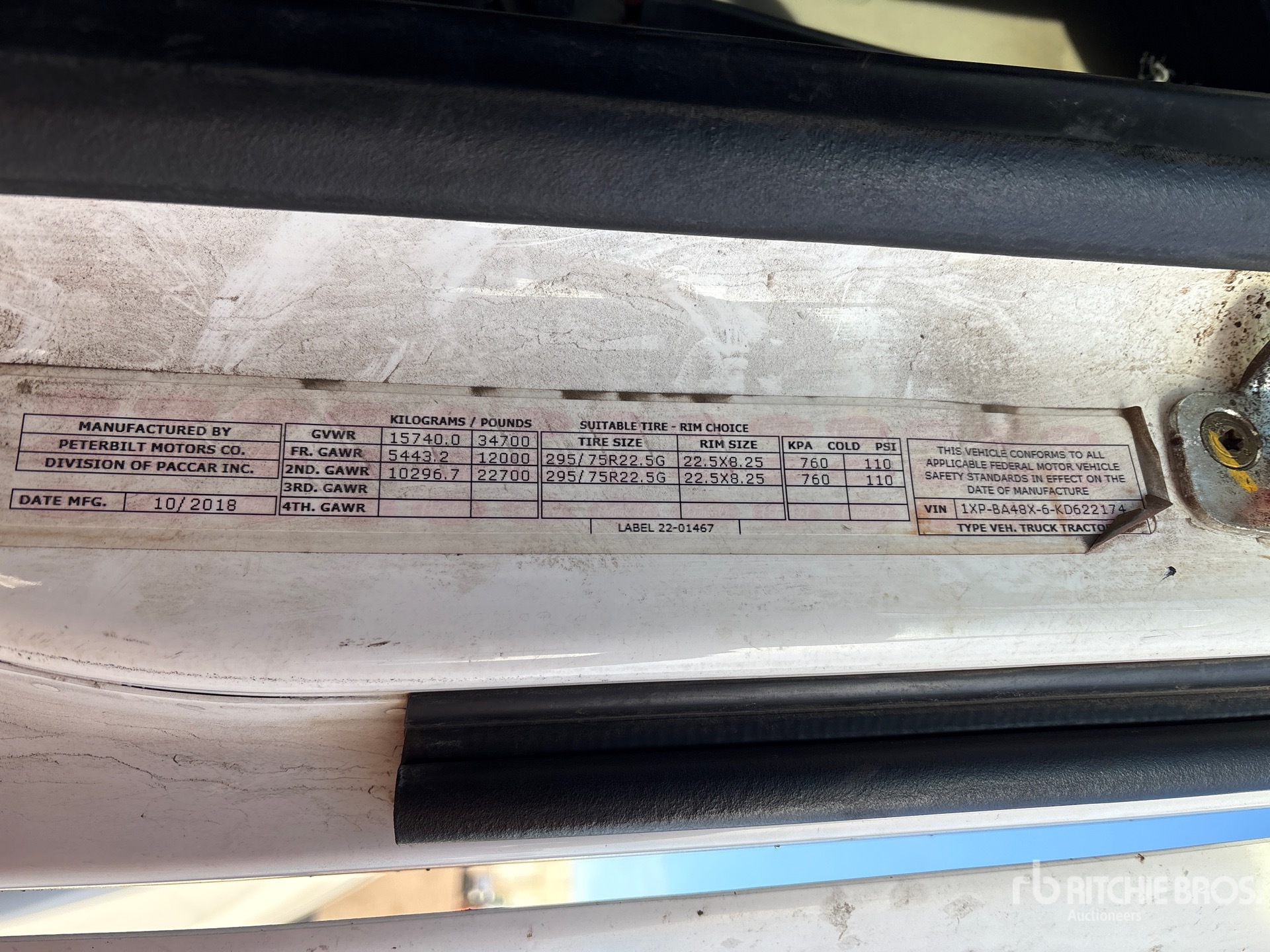 Cummins X15 Engine, 2018 US EPA Label, 15708.1 Engine hrs, 1200 lb Front Axle, 22700 lb Rears, 34700 lb GVWR, 158 in Wheelbase, Air Suspension, 295/75R22.5 Front Tires, 295/75R22.5 Rear Tires, Air Sliding 5th Wheel, Blower