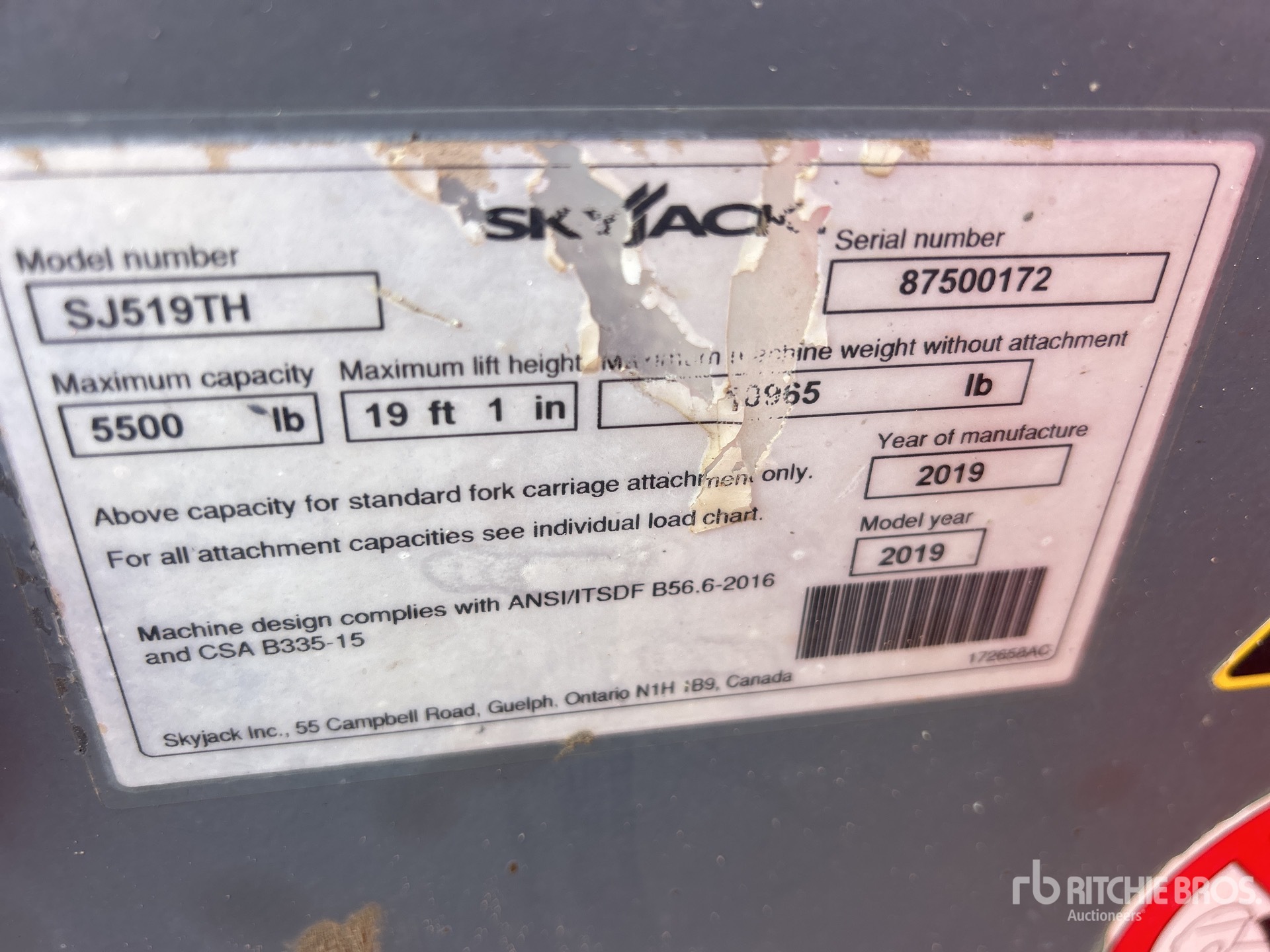 The detailed equipment information is limited in scope, and Ritchie Bros. Auctioneers has not inspected any aspects or components of the equipment other than those expressly set forth herein. Unless expressly stated, we make no representations or warranties, express or implied, concerning the equipment or its components, including without limitation any representations or warranties concerning functionality, conformity or compliance with any safety standard or requirement of any applicable authority or regulatory body, fitness for any particular purpose, or merchantability. You are strongly advised to perform your own detailed inspection of the equipment prior to bidding.