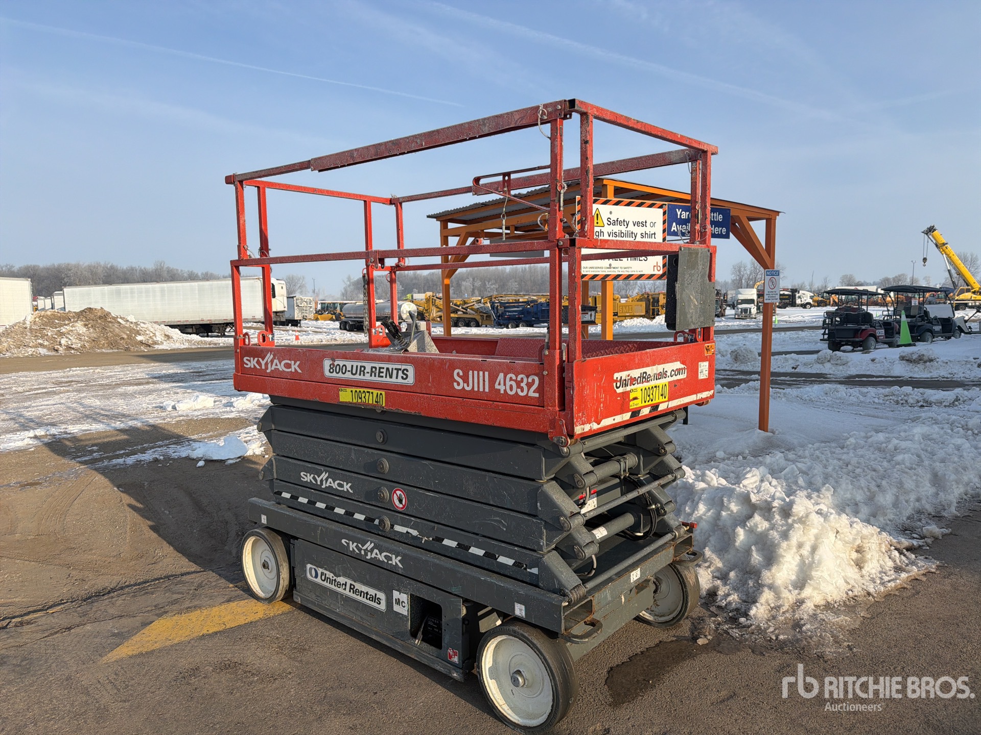 Deficiencies noted - please see inspection report ; Please Be Aware That All Aerial Equipment Requires A Self-Supplied Safety Harness And Trained Personnel To Operate On All Ritchie Bros. Properties - On Lifts ;