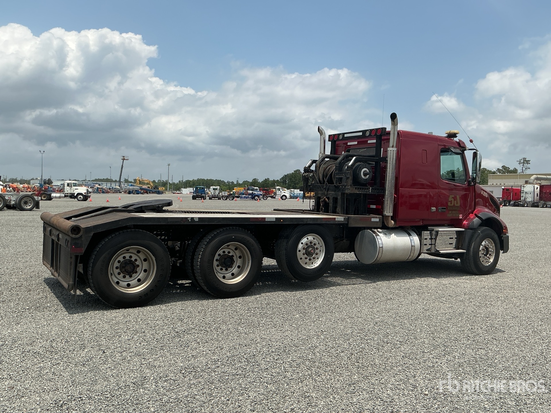 Cummins X15 6 Cylinder 15 L Diesel 605 hp Engine, 2018 US EPA Label, Requires Diesel Exhaust Fluid, 705.3 Engine hrs, Engine Brake, Eaton Fuller Automated Transmission, Differential Lock, 18740 lb Front Axle, 46000 lb Rears, Meritor Drive Axles, 83480 lb GVWR, Air Ride Cab, 42 in Flat Top Sleeper Cab, Aluminum Outer Wheels, 385/65R22.5 Front Tires, 11R24.5 Rear Tires, Steerable Air Lift Pusher Axle, Steerable Air Lift Tag Axle, Dual Steering Boxes, Air Ride Suspension, 242 in Wheelbase, PTO, Wet Kit, 17 ft 1 in x 100 in Bed, Tail Roll, EQUIPMENT-FROM-5J-GROUP