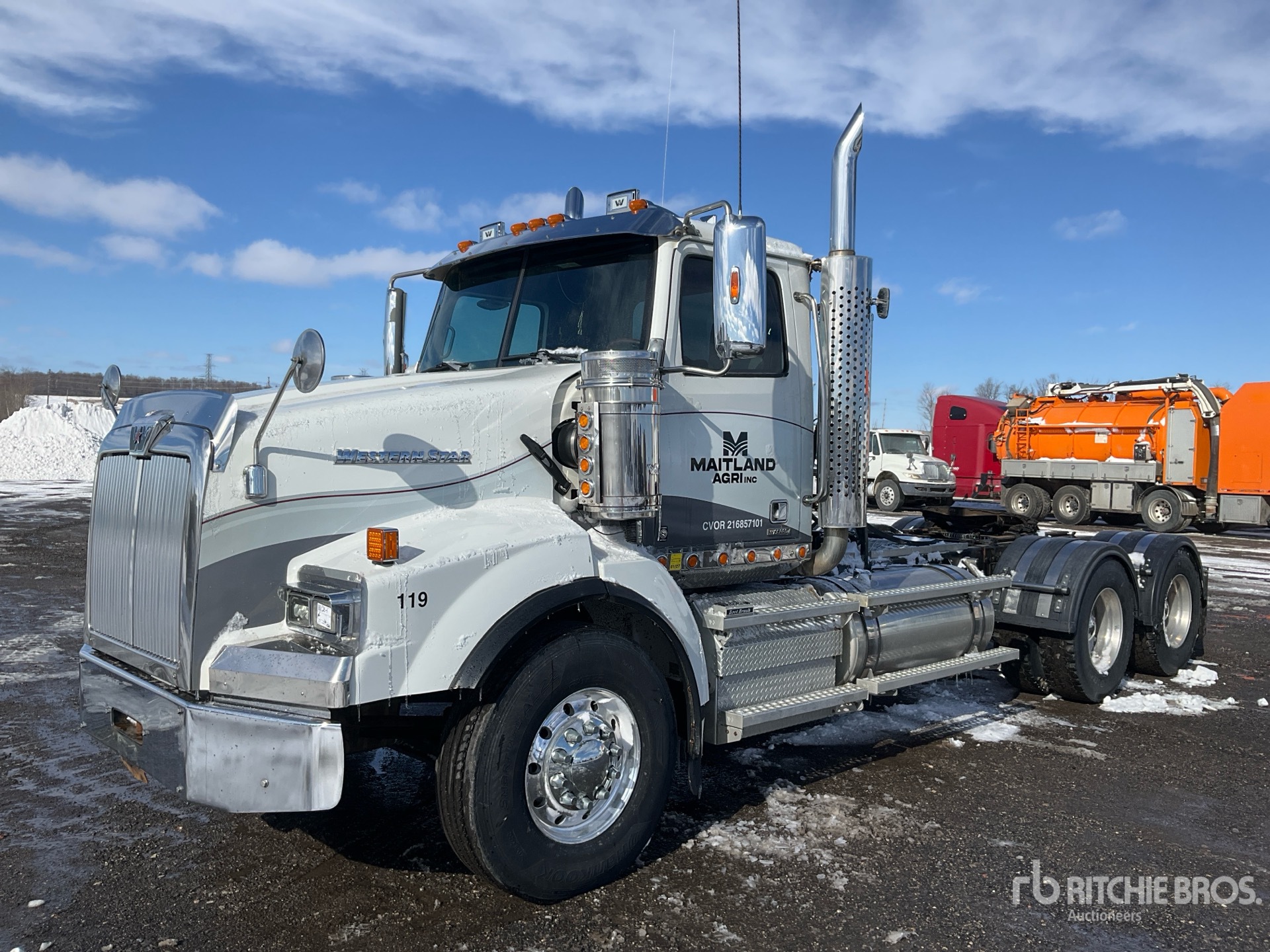 Detroit DD15 505 hp Engine, 2018 US EPA Label, 15308 Engine hrs, Eaton Fuller RTLO-18918B 18-Speed Manual Transmission, 16000 lb Front Axle, 46000 lb Rears, Engine Brake, Double Differential Locks, 220 in Wheelbase, Air Suspension, Aluminum Wheels, 315/80R22.5 Front Tires, 11R22.5 Rear Tires, Wet Kit, Air Sliding 5th Wheel, Dual Fuel Tanks