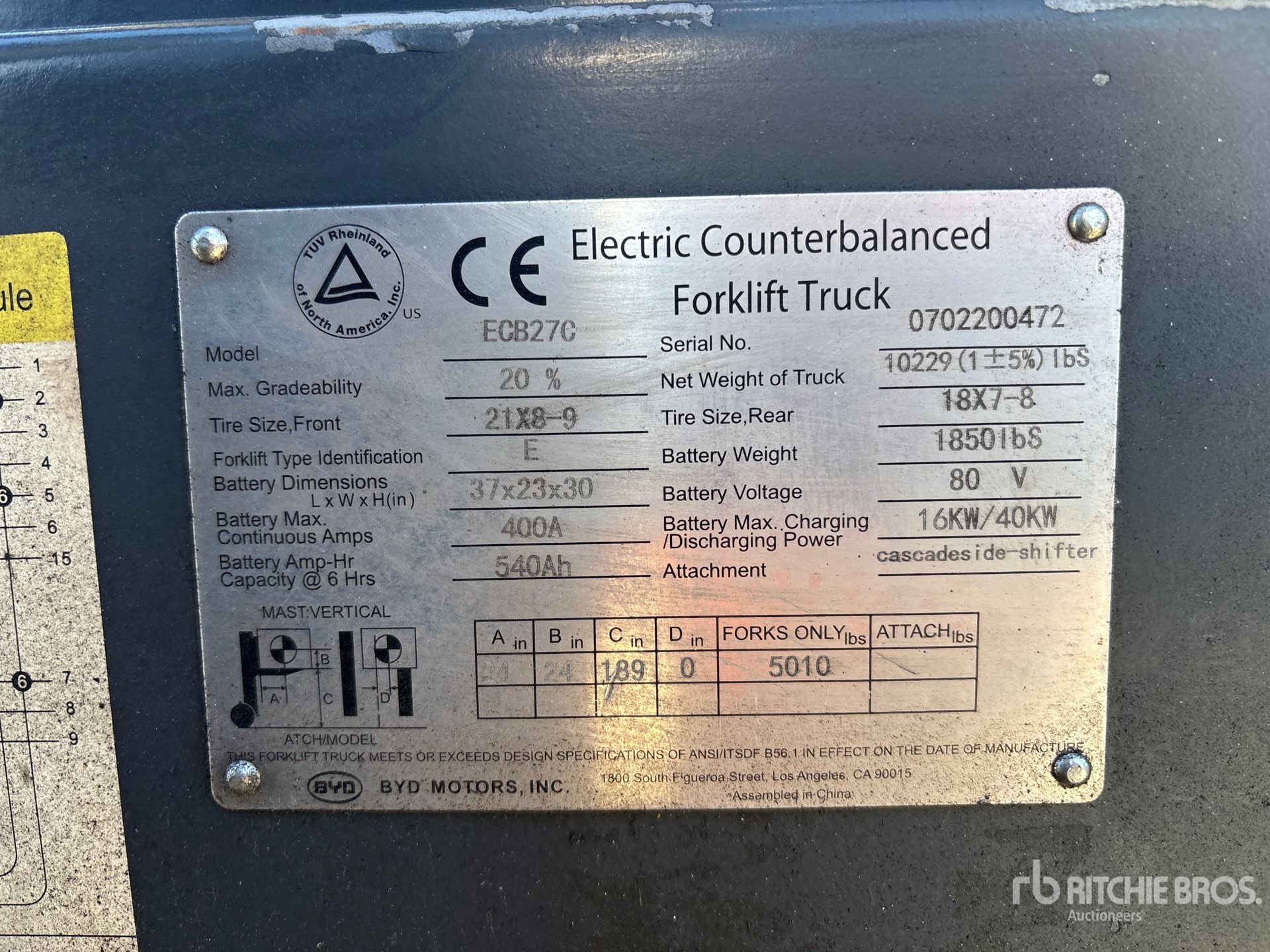 2020 Byd ECB27 6000 lb Electric Forklift