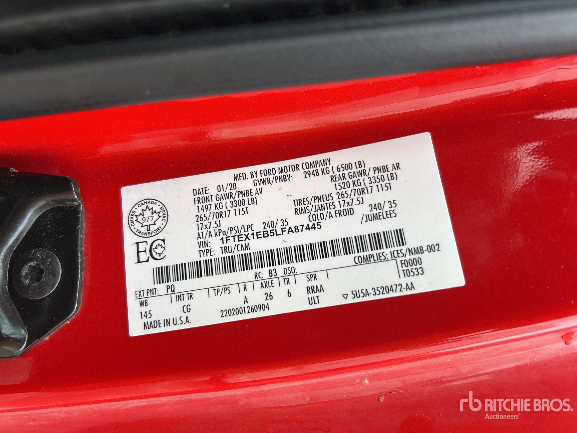 3.3 L V6 Gasoline Engine, 2020 US EPA Label, CARB Compliant, Automatic Transmission, Air Conditioner, Tonneau Cover, 6500 lb GVWR, 265/70R17 Tires, 6 ft 6 in Bed, NOTICE-TO-US-BIDDERS: this asset is likely exempt from US import tariffs as it was manufactured in the US. Bidders are responsible for confirming with their customs broker