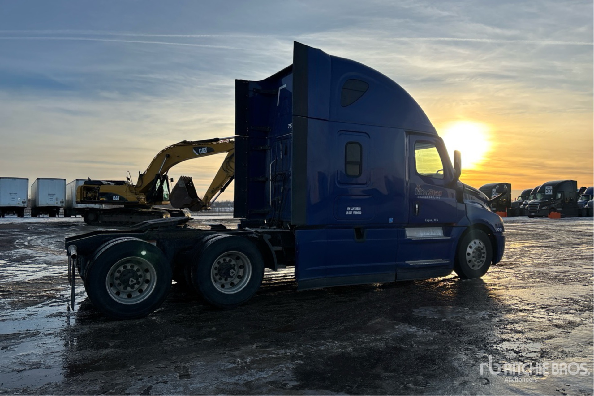 Located in Lane 26 Spot 12, Detroit DD15 475 hp Engine, 2019 US EPA Label, 20879 Engine hrs, Detroit DT12-1650-OH1 12-Speed Automated Transmission, 12500 lb Front Axle, 40000 lb Rears, 52500 lb GVWR, Engine Brake, 70 in High Rise Sleeper Cab, Bunk Beds, 223 in Wheelbase, Air Suspension, Aluminum Wheels, 275/80R22.5, Air Sliding 5th Wheel, Dual Fuel Tanks