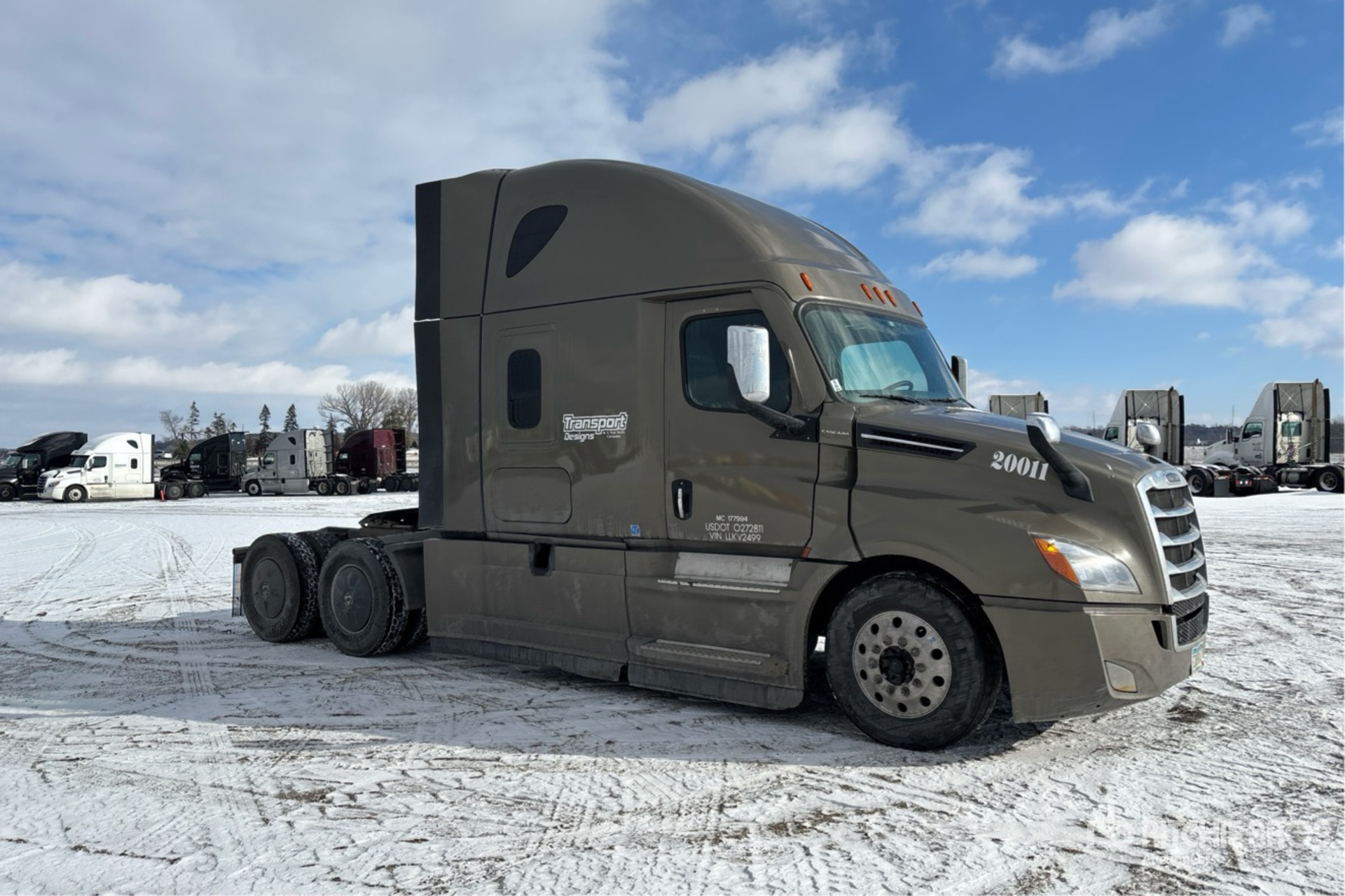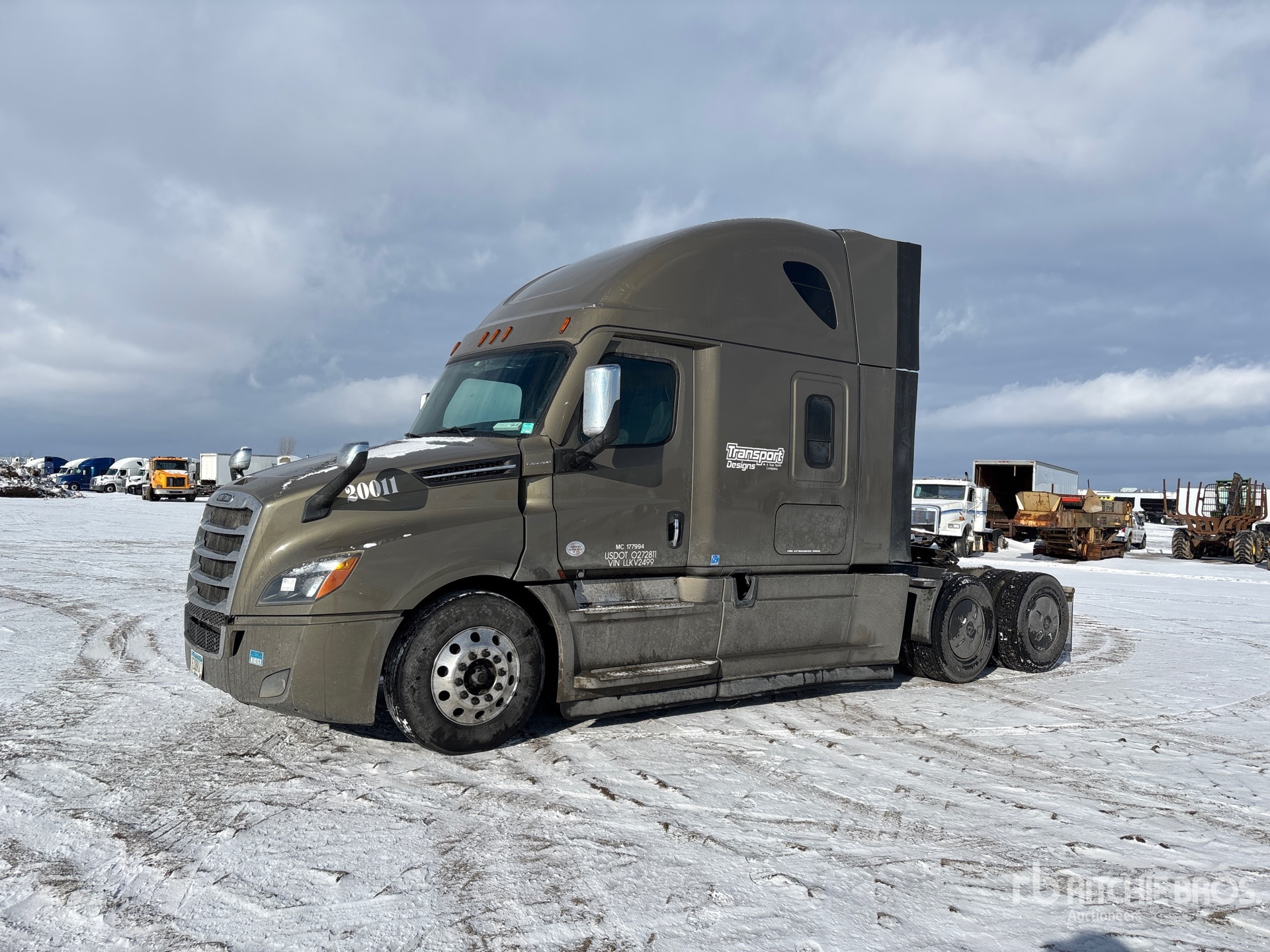 Located in Lane 6 Spot 37, Detroit DD15 475 hp Engine, 2019 US EPA Label, 23106 Engine hrs, Detroit DT12-1650-OH1 12-Speed Automated Transmission, 12500 lb Front Axle, 40000 lb Rears, 52500 lb GVWR, Engine Brake, 70 in High Rise Sleeper Cab, Bunk Beds, 223 in Wheelbase, Air Suspension, Aluminum Wheels, 275/80R22.5 Front Tires, 295/75R22.5 Rear Tires, Air Sliding 5th Wheel, Dual Fuel Tanks