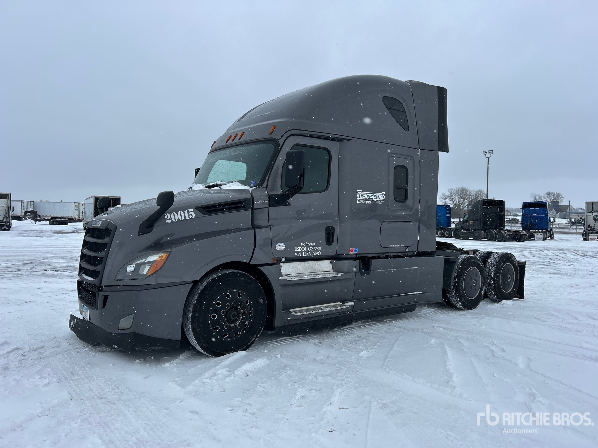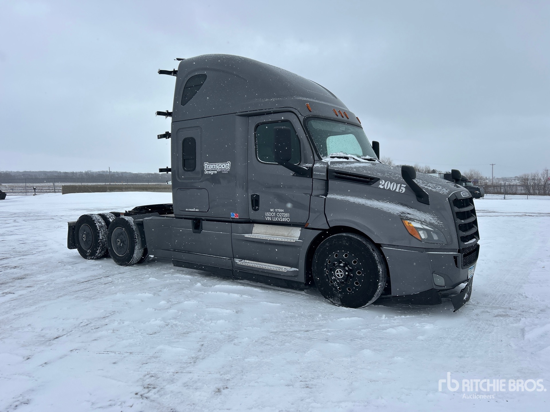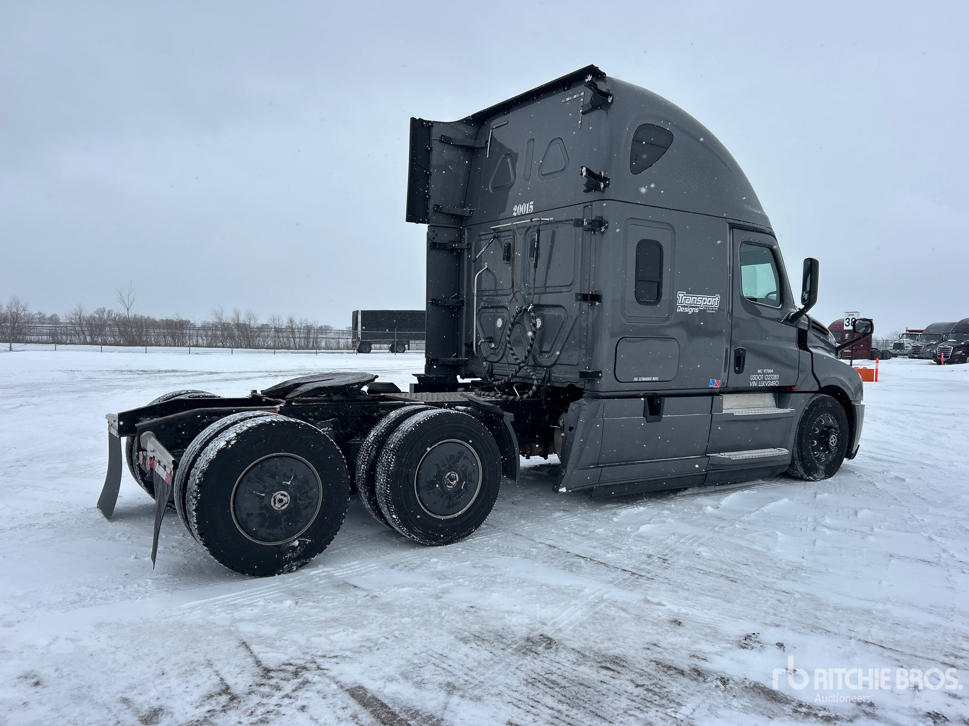 Located in Lane 26 Spot 108, Detroit DD15 475 hp Engine, 2019 US EPA Label, 25492 Engine hrs, Eaton Fuller FAO-16810C 10-Speed Manual Transmission, 12500 lb Front Axle, 40000 lb Rears, 52500 lb GVWR, 60 in High Rise Sleeper Cab, Bunk Beds, 223 in Wheelbase, Aluminum Outer Wheels, 275/80R22.5, Air Sliding 5th Wheel, Dual Fuel Tanks