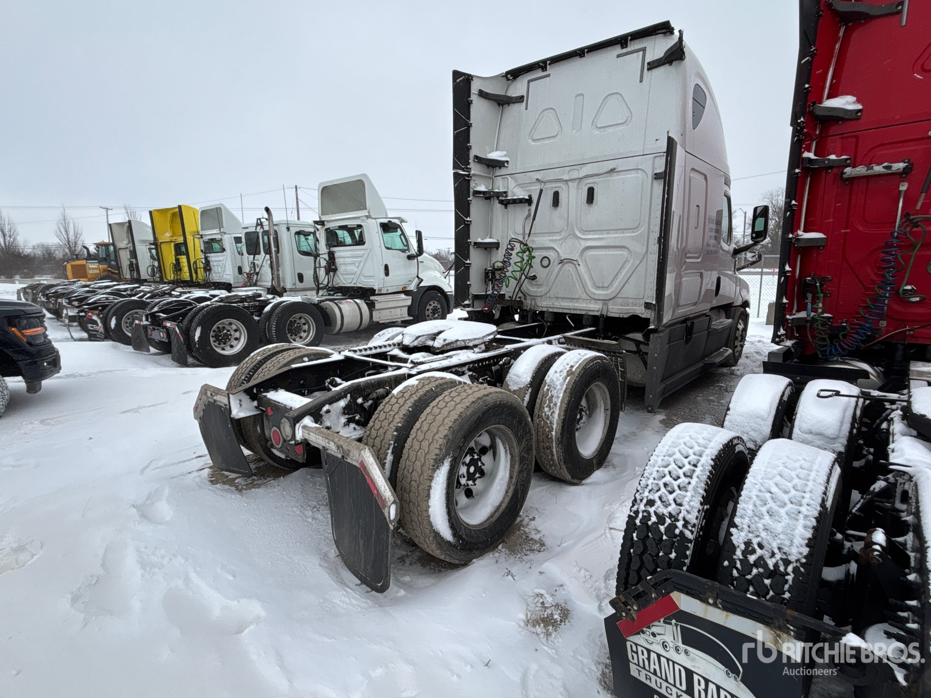 Detroit DD15 455 hp Engine, 2015 US EPA Label, 26306 Engine hrs, Detroit DT12-1650-OH1 12-Speed Automated Transmission, 12350 lb Front Axle, 40000 lb Rears, 52350 lb GVWR, Engine Brake, 60 in High Rise Sleeper Cab, Bunk Beds, Bunk Heater, 229 in Wheelbase, Air Suspension, Aluminum Outer Wheels, 295/75R22.5, Air Sliding 5th Wheel, Dual Fuel Tanks