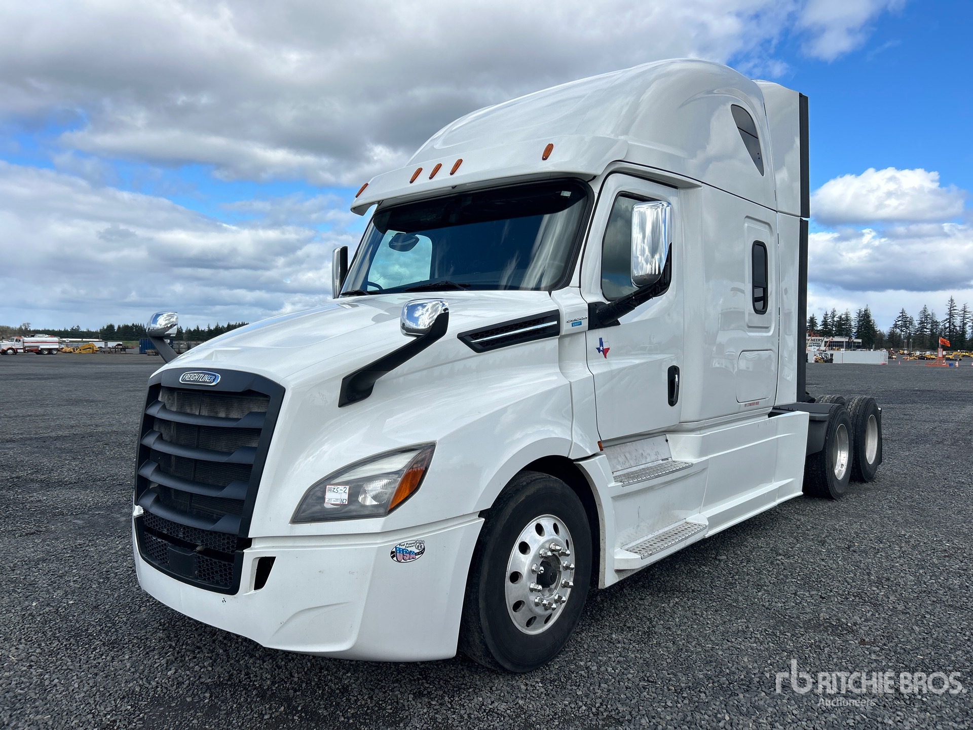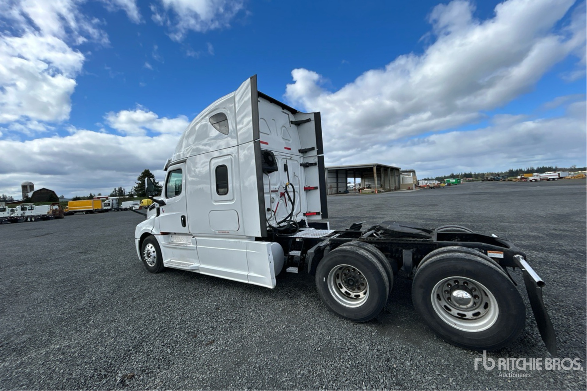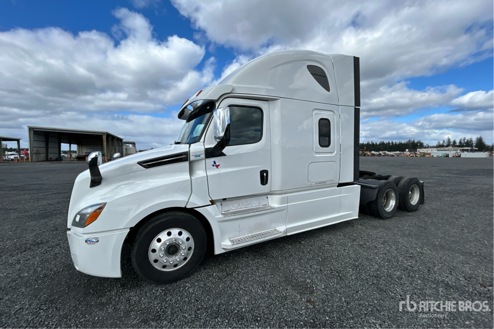 Detroit DD15 505 hp Engine, 2019 US EPA Label, 17422 Engine hrs, Detroit DT12-1750-OH1 12-Speed Automated Transmission, 13300 lb Front Axle, 40000 lb Rears, 53300 lb GVWR, Engine Brake, 60 in High Rise Sleeper Cab, Bunk Beds, 235 in Wheelbase, Air Suspension, Aluminum Wheels, 275/80R22.5 Front Tires, 295/75R22.5 Rear Tires, Air Sliding 5th Wheel, Dual Fuel Tanks