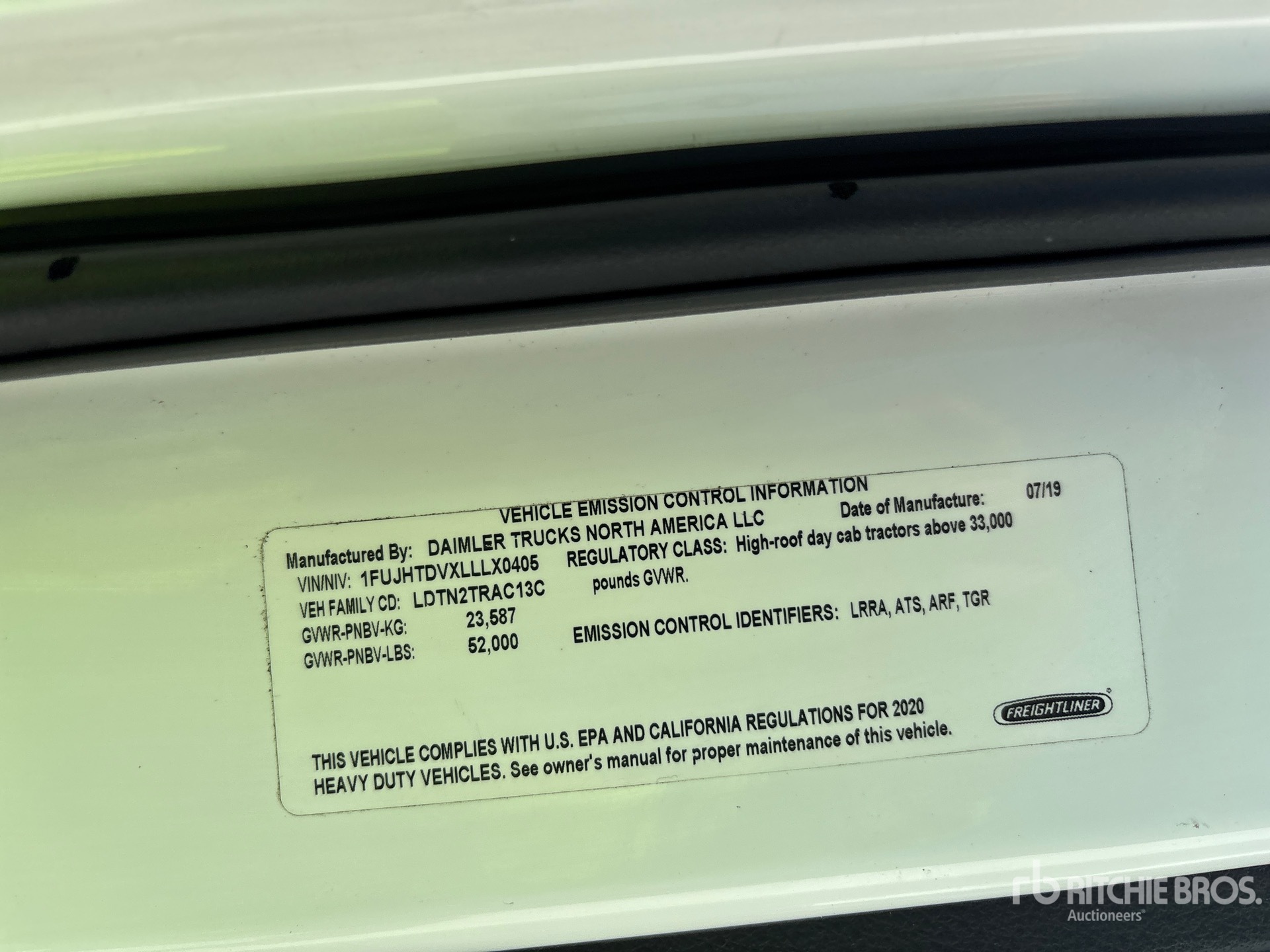 Located in Lane 3 Spot 16, Detroit DD13 470 hp Engine, 2019 US EPA Label, 11614 Engine hrs, Detroit DT12-1650-OH1 12-Speed Automated Transmission, 12000 lb Front Axle, 40000 lb Rears, 52000 lb GVWR, Engine Brake, 168 in Wheelbase, Air Suspension, Aluminum Wheels, 11R22.5, Air Sliding 5th Wheel, Dual Fuel Tanks, Professionally-Maintained-Fleet-Vehicle-PAG