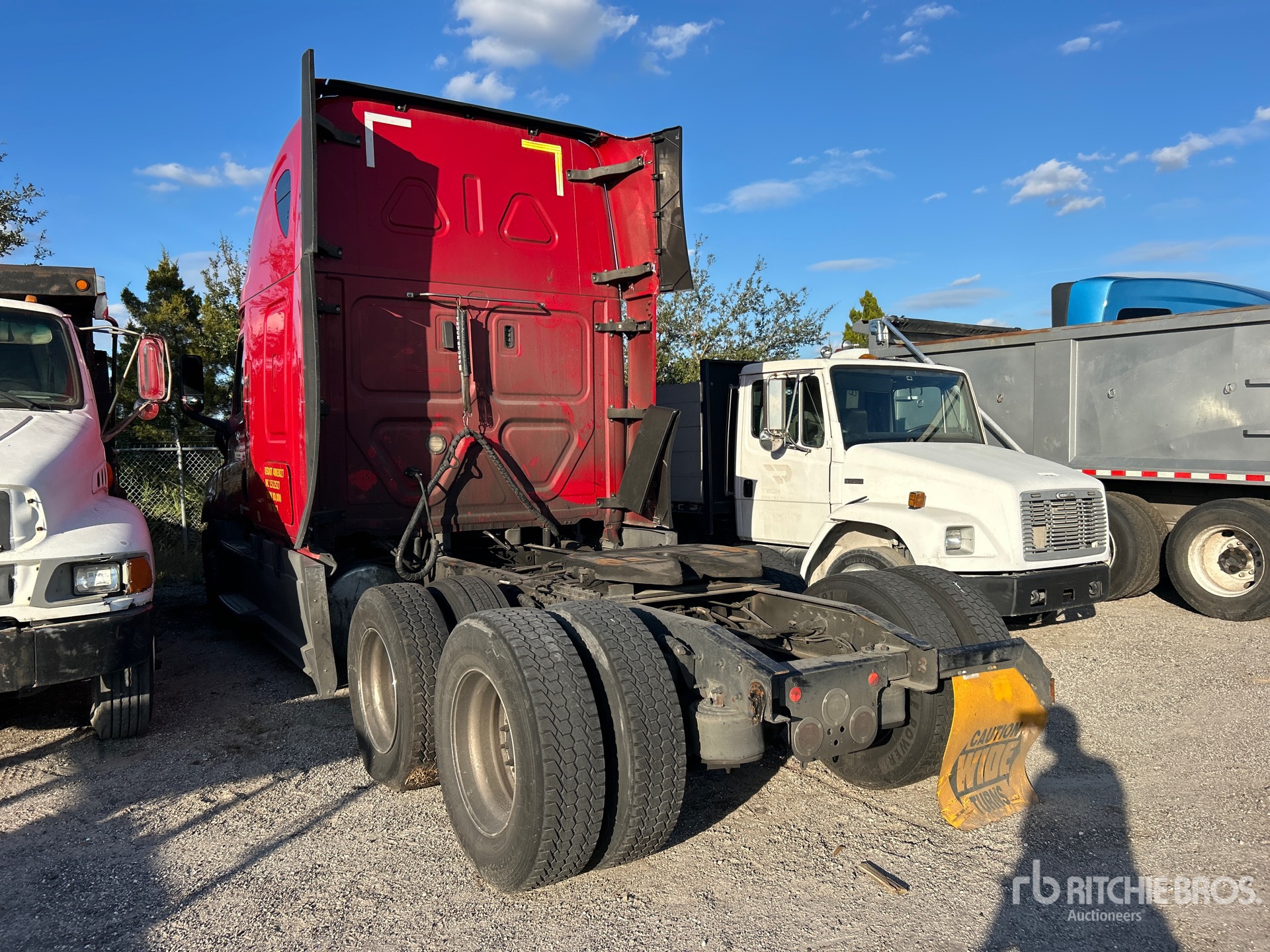 Detroit DD15 400 hp Engine, 2020 US EPA Label, Detroit DT12-1750-DH1 12-Speed Automated Transmission, 12000 lb Front Axle, 40000 lb Rears, 52000 lb GVWR, Engine Brake, 60 in High Rise Sleeper Cab, Bunk Beds, 223 in Wheelbase, Air Suspension, Aluminum Outer Wheels, 295/75R22.5, Air Sliding 5th Wheel, Dual Fuel Tanks