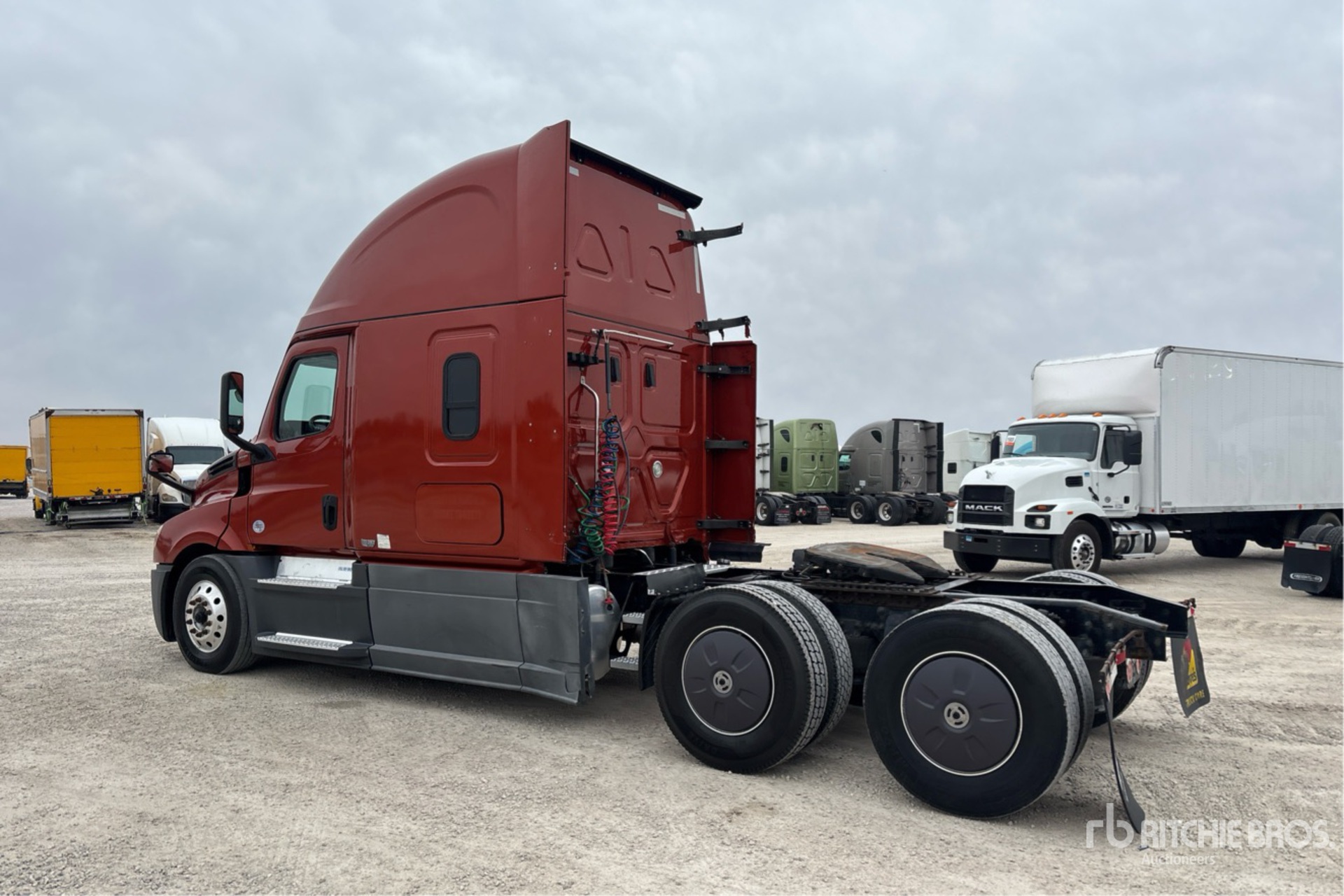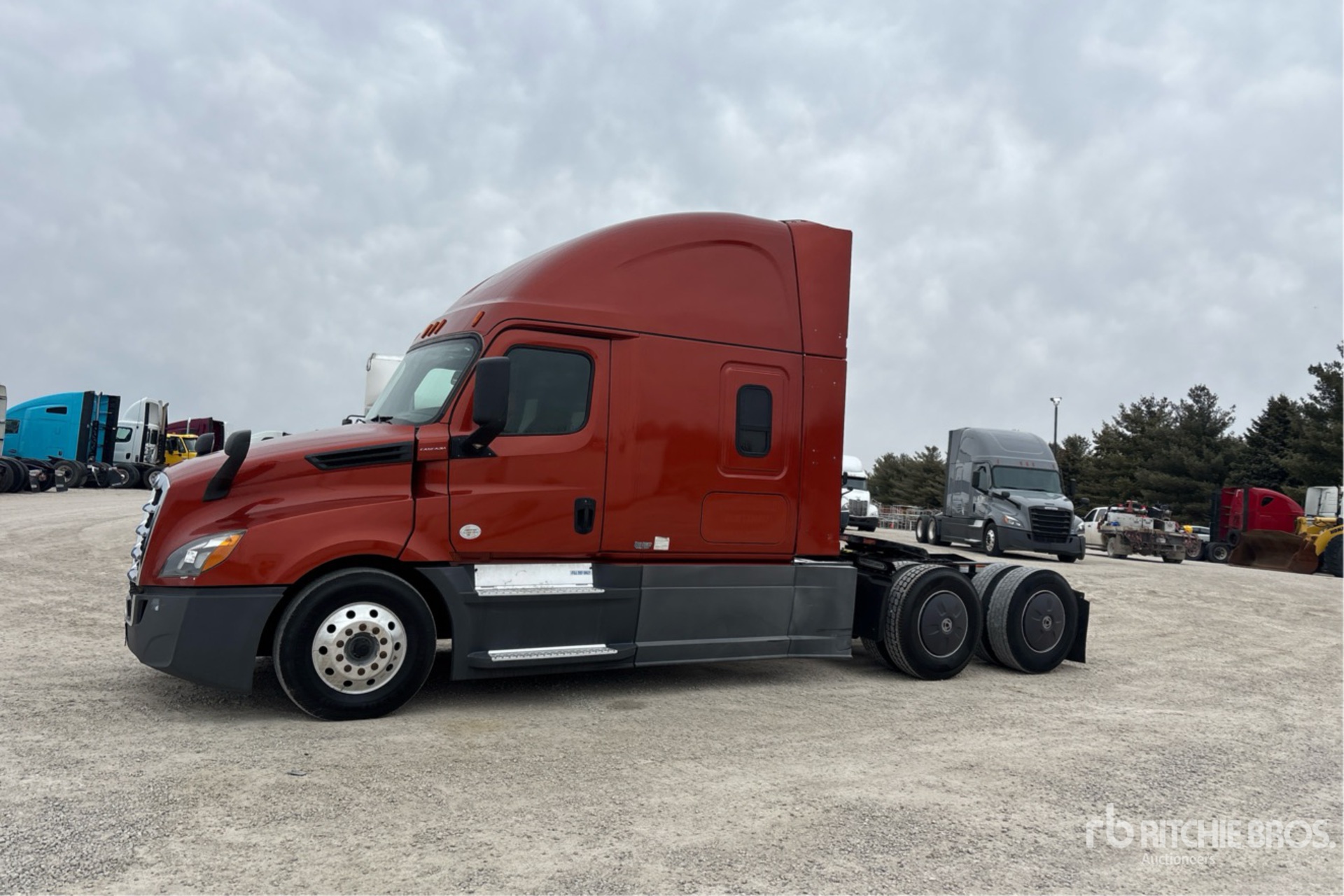 Located in Lane 19 Spot 19, Detroit DD15 400 hp Engine, 2019 US EPA Label, 19411.51 Engine hrs, Detroit DT12-1750-OH1 12-Speed Automated Transmission, 12500 lb Front Axle, 40000 lb Rears, 52500 lb GVWR, Engine Brake, 70 in High Rise Sleeper Cab, Bunk Beds, Auxiliary Power Unit, 223 in Wheelbase, Air Suspension, Aluminum Outer Wheels, 295/75R22.5, Air Sliding 5th Wheel, Dual Fuel Tanks