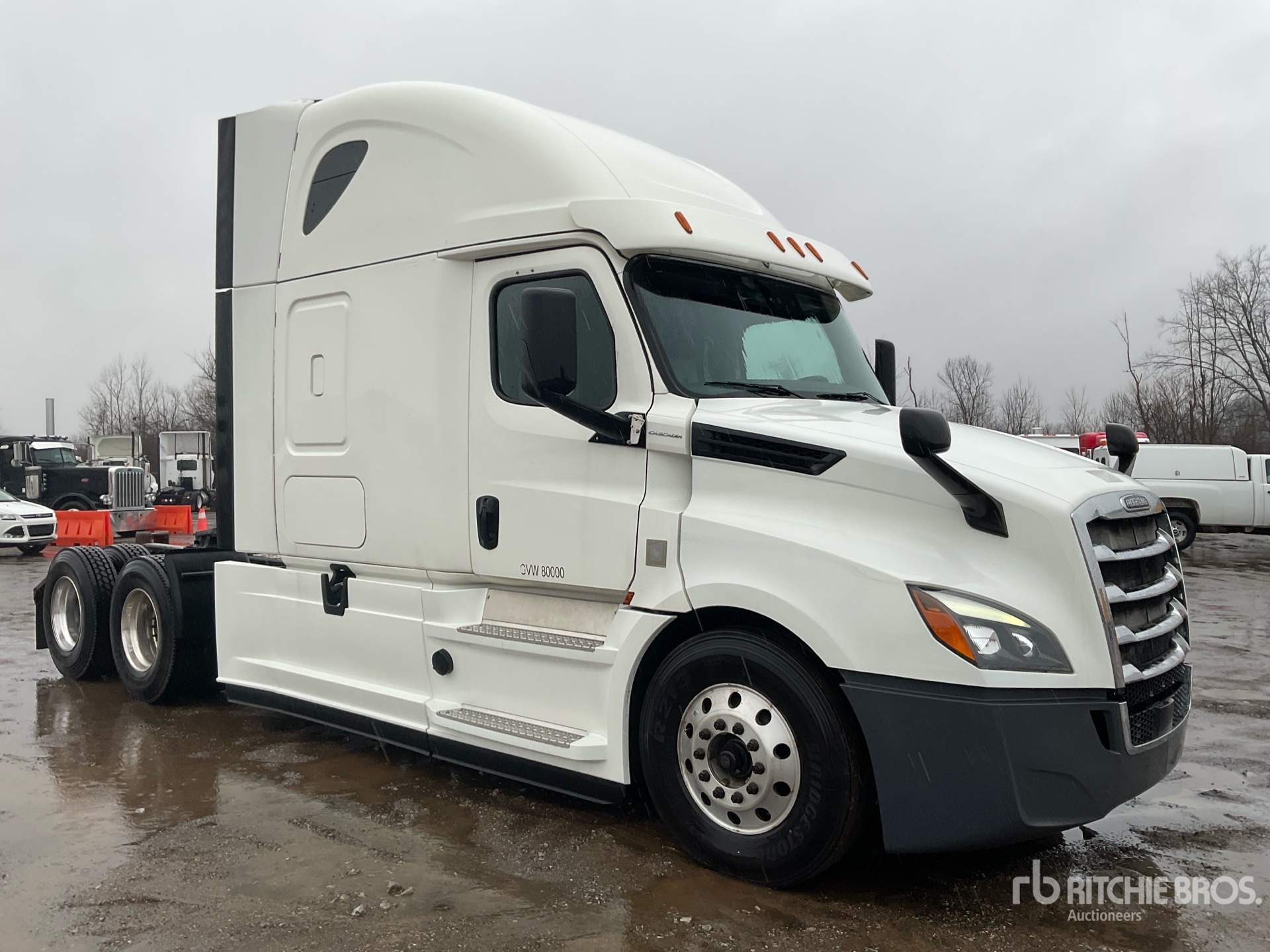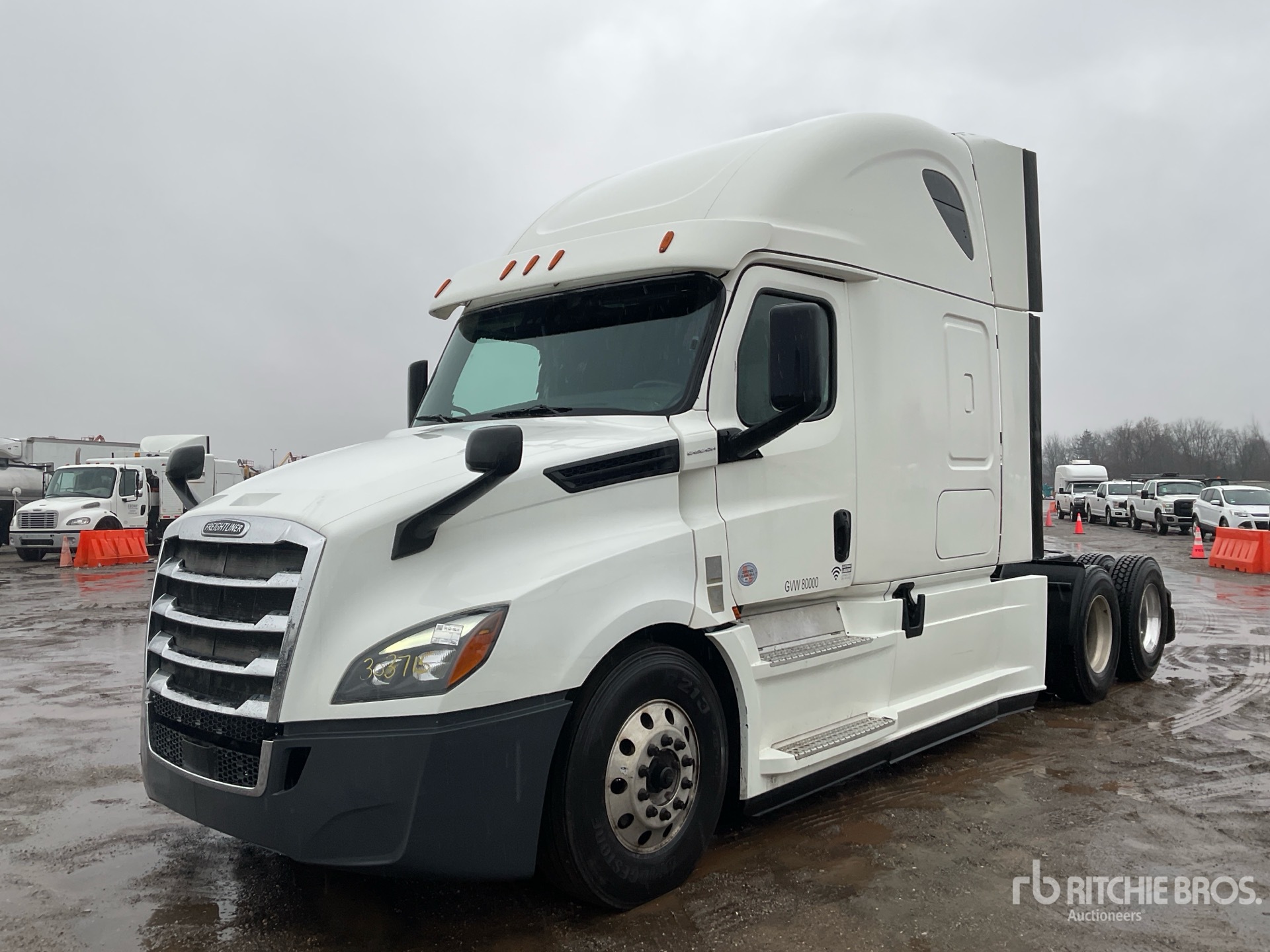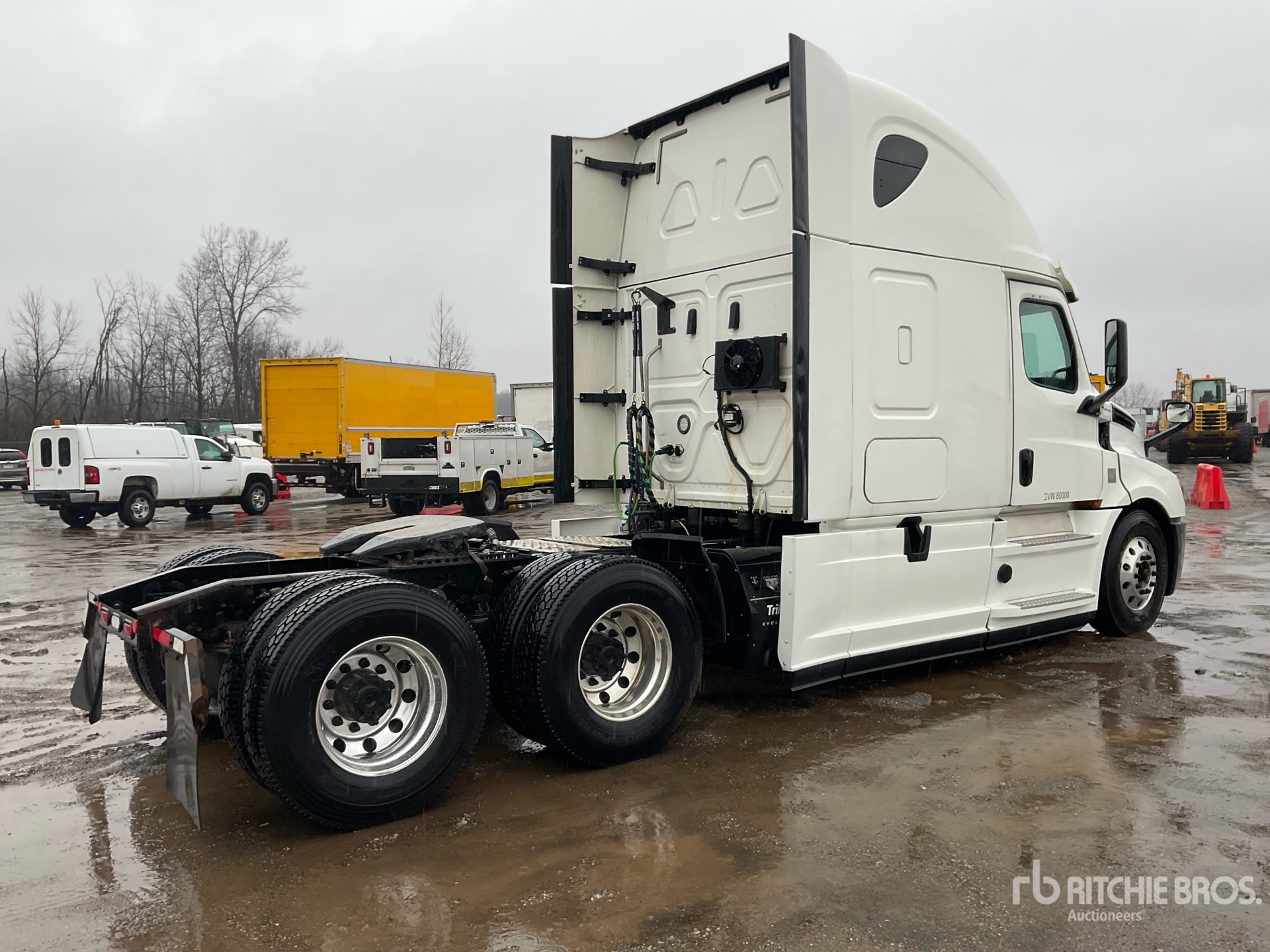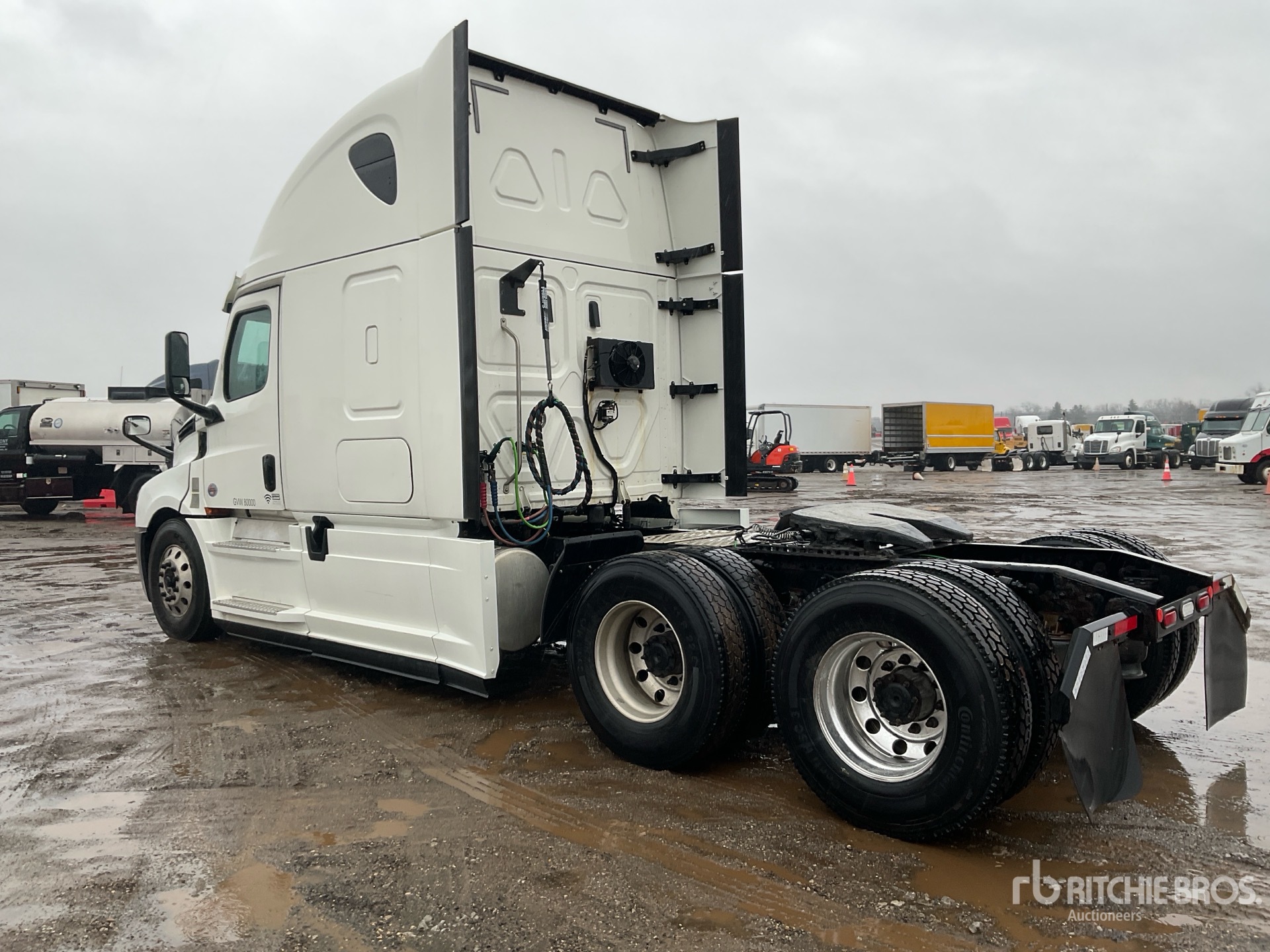 Detroit DD15 455 hp Engine, US EPA Label, 16517 Engine hrs, Detroit DT12-1650-OH1 12-Speed Automated Transmission, 13200 lb Front Axle, 40000 lb Rears, 53200 lb GVWR, Engine Brake, 60 in High Rise Sleeper Cab, Bunk Beds, Auxiliary Power Unit, 229 in Wheelbase, Aluminum Wheels, 11R22.5, Air Sliding 5th Wheel, Dual Fuel Tanks