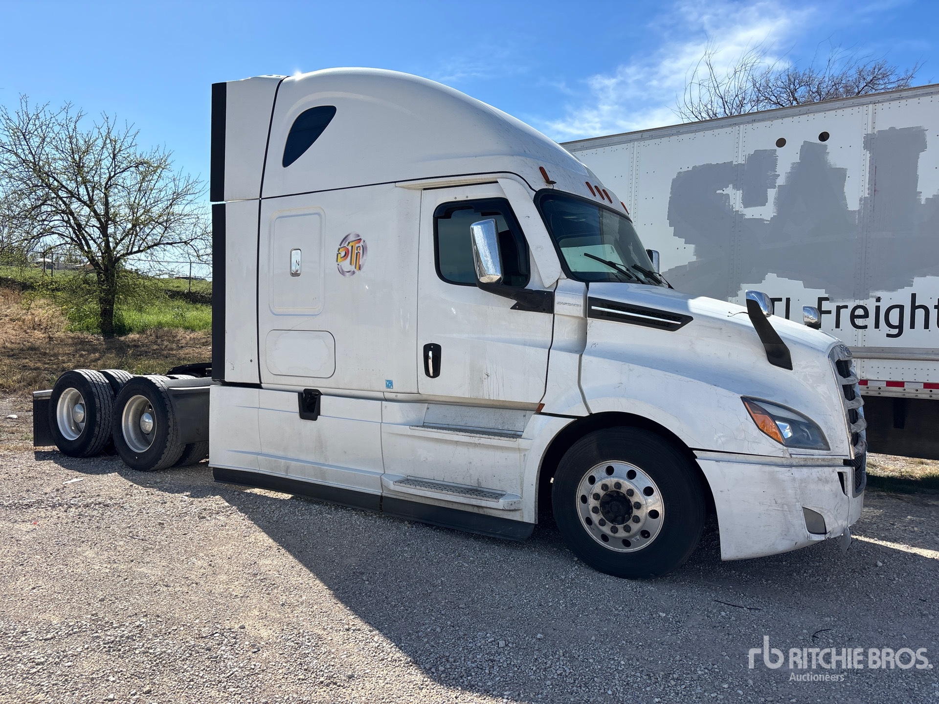 Detroit DD15 505 hp Engine, 2019 US EPA Label, Detroit DT12-1650-OH1 12-Speed Automated Transmission, 12350 lb Front Axle, 40000 lb Rears, 52350 lb GVWR, Engine Brake, 70 in High Rise Sleeper Cab, Bunk Beds, 229 in Wheelbase, Air Suspension, Aluminum Outer Wheels, 275/80R22.5 Front Tires, 295/75R22.5 Rear Tires, Air Sliding 5th Wheel, Dual Fuel Tanks