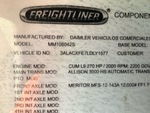 Cummins ISL9 6 Cylinder 9.3 L Diesel 350 hp Engine, 2019 US EPA Label, Requires Diesel Exhaust Fluid, 12032 Engine hrs, Exhaust Brake, Allison 3000 6-Speed Automatic Transmission, 12000 lb Front Axle, 21000 lb Rears, Detroit DA-RS-21.0-4 Drive Axles, 5.56:1 Axle Ratio, 33000 lb GVWR, Air Ride Cab, Aluminum Wheels, 11R22.5, Airliner Air Ride Suspension, 285 in Wheelbase, Supreme 28 ft x 102 in Wide x 96 in High Body, Liftgate, Professionally-Maintained-Fleet-Vehicle-PAG