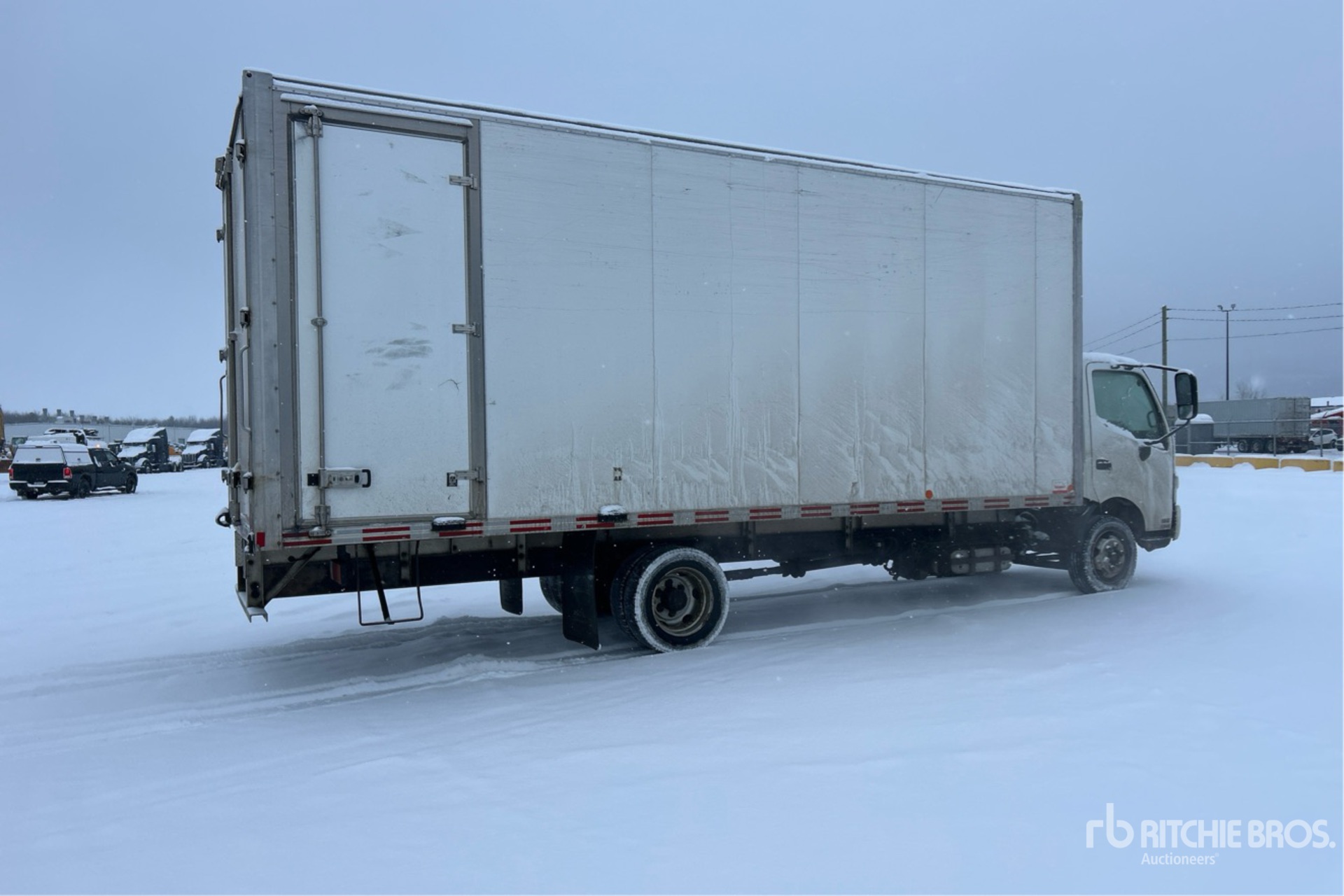 Hino J05E-TP 4 Cylinder 313 cid Diesel 210 hp Engine, 2019 US EPA Label, Automatic Transmission, 7270 lb Front Axle, 13660 lb Rears, 8850 kg GVWR, 225/70R19.5 Front Tires, 225/70R19.5 Rear Tires, Spring Suspension, 186 in Wheelbase, Transit 22 ft x 102 in Wide x 102 in High Body, Curbside Door, Walk-Up Ramp