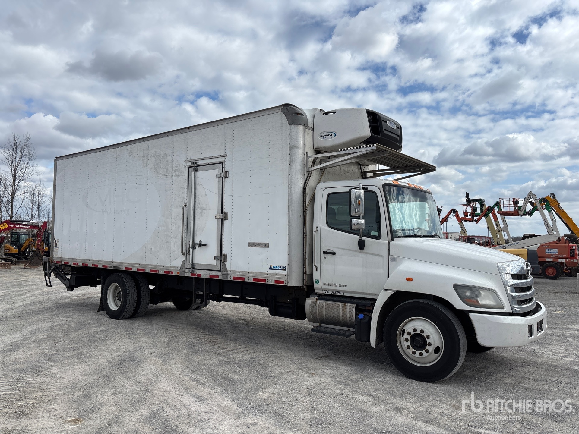 Hino J08E 6 Cylinder 7.7 L Diesel Engine, 2018 US EPA Label, Requires Diesel Exhaust Fluid, 10398 Engine hrs, Exhaust Brake, Allison Automatic Transmission, 10000 lb Front Axle, 19000 lb Rears, 25950 lb GVWR, 275/80R22.5, Air Ride Suspension, 270 in Wheelbase, Carrier Supra 860 Reefer Unit, 10631 Reefer Engine Hours:, 26 ft x 102 in Wide x 102 in High Body, Walk-Up Ramp, Liftgate