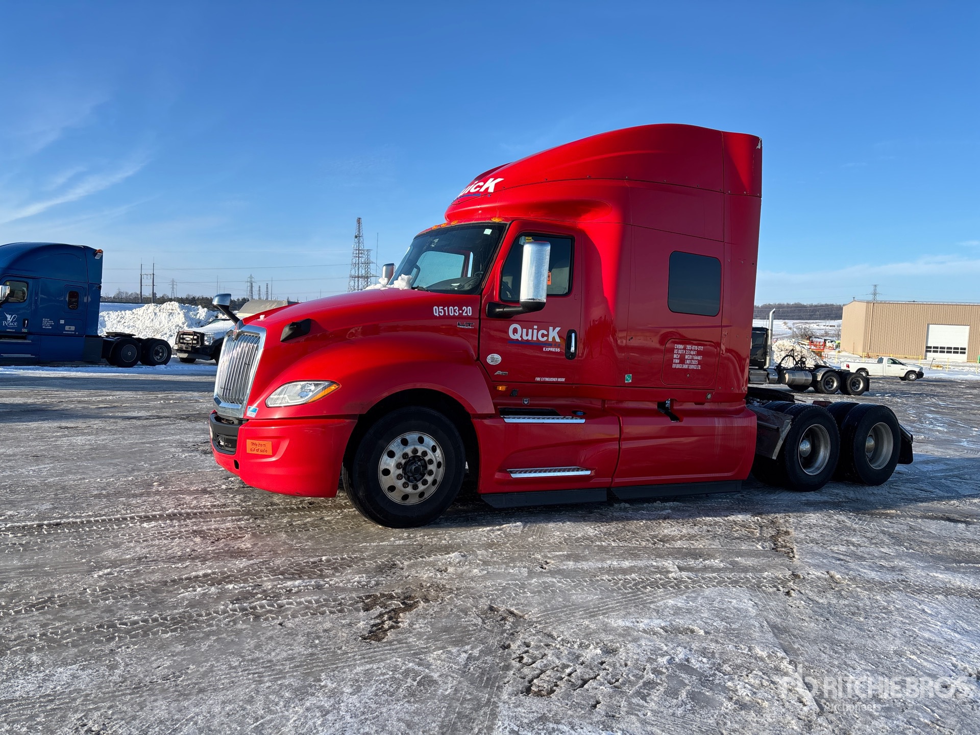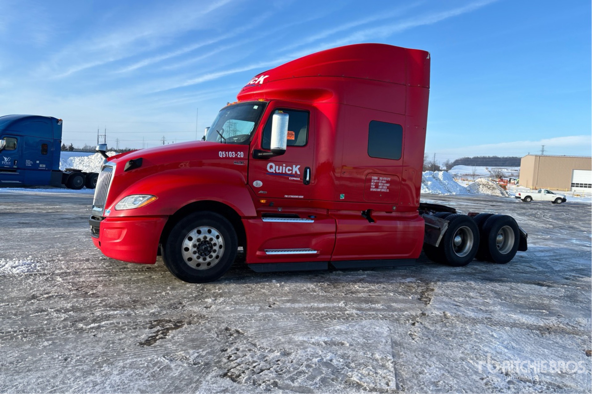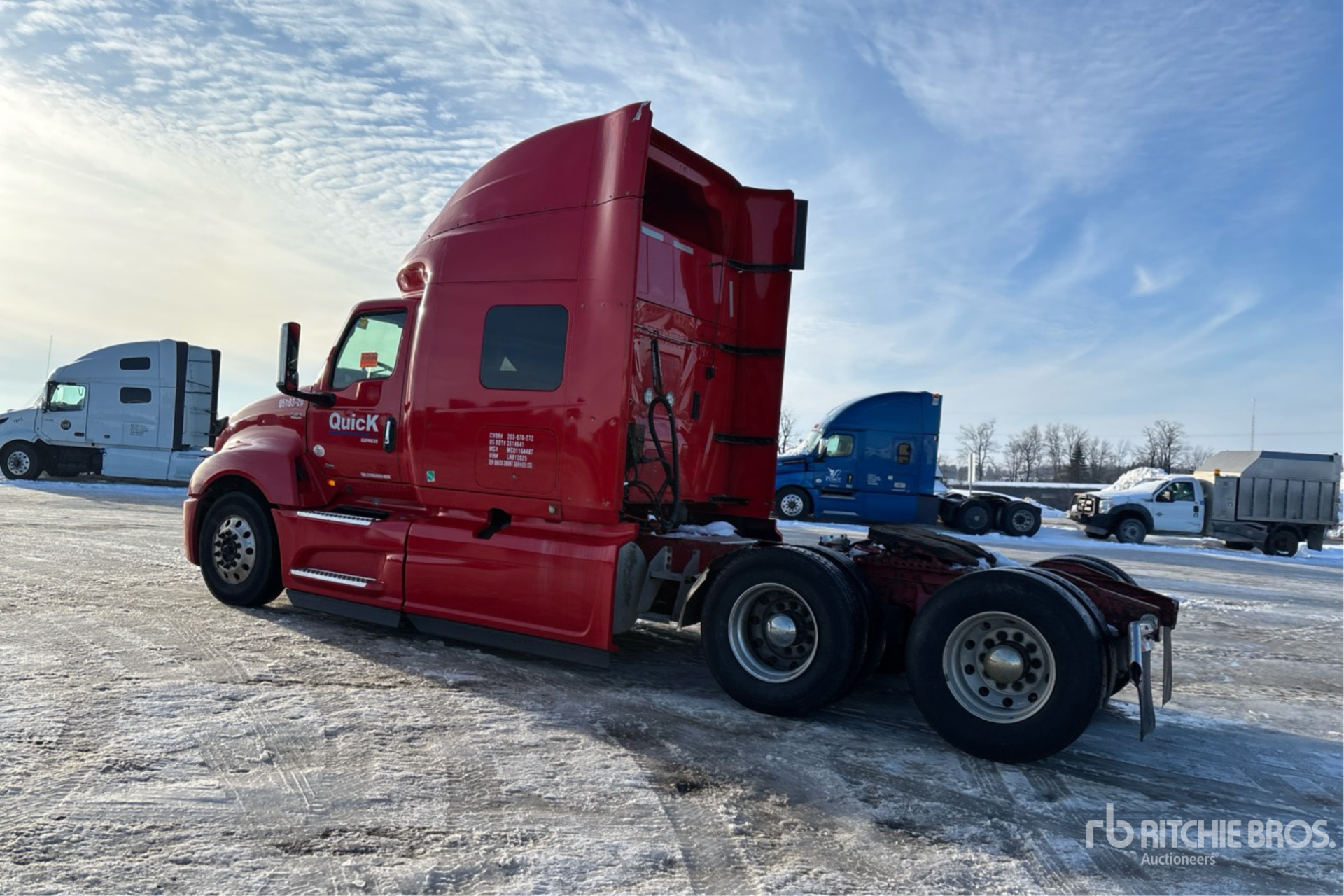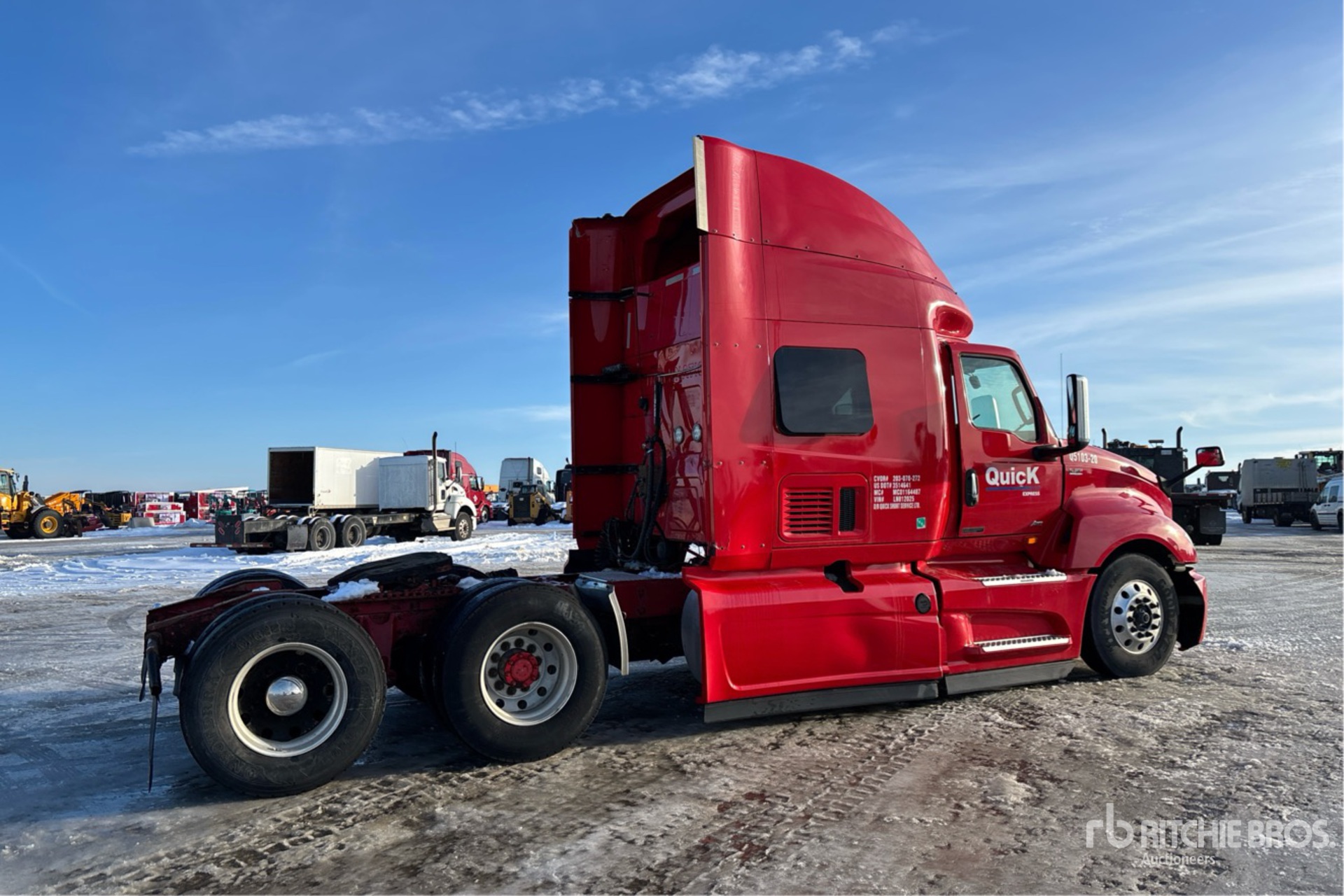 Located in Lane 31 Spot 7, International A26 Engine, 13757 Engine hrs, Automated Transmission, 12350 lb Front Axle, 40000 lb Rears, 52350 lb GVWR, Engine Brake, 72 in High Rise Sleeper Cab, Bunk Beds, Bunk Heater, 232 in Wheelbase, Air Suspension, Aluminum Wheels, 11R22.5, Air Sliding 5th Wheel, Dual Fuel Tanks