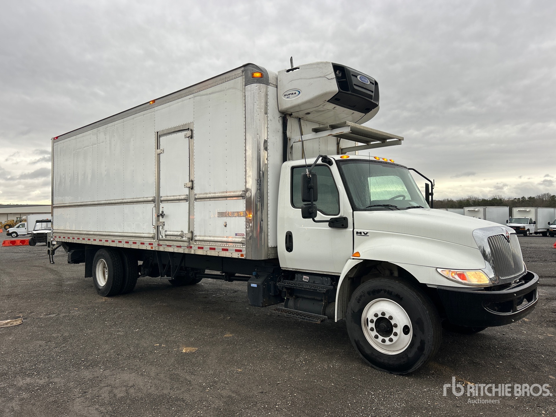 Cummins B6.7 220 6 Cylinder 6.7 L Diesel 220 hp Engine, US EPA Label, Requires Diesel Exhaust Fluid, Eaton Fuller Automatic Transmission, 10000 lb Front Axle, 17500 lb Rears, 25999 lb GVWR, 11R22.5, Air Ride Suspension, 270 in Wheelbase, Carrier Supra 860 Reefer Unit, 8570 Reefer Engine Hours:, Morgan 26 ft x 102 in Wide x 103 in High Body, Curbside Door, Liftgate