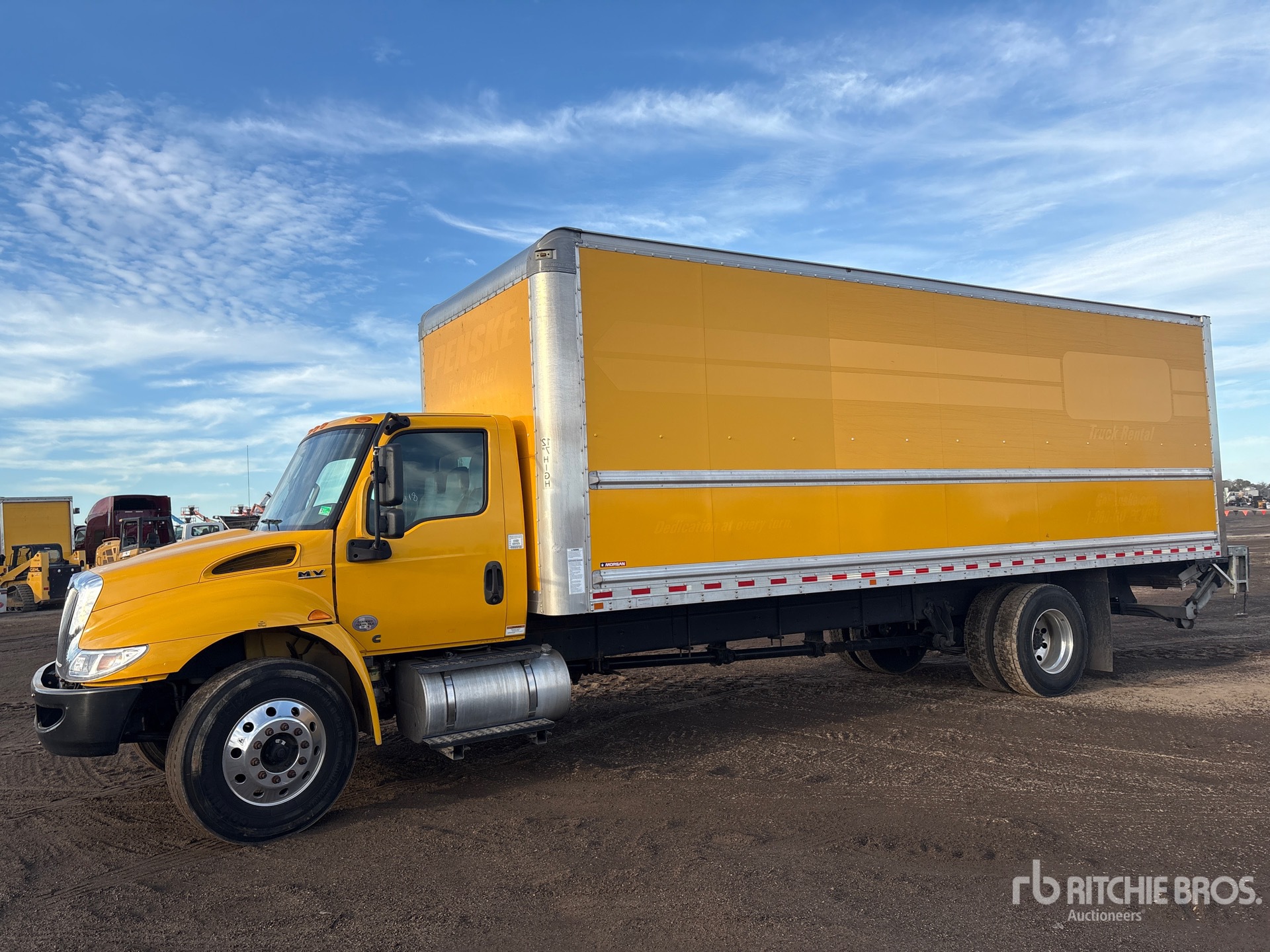 Located in Lane 203 Spot 1, Cummins B6.7 220 6 Cylinder 6.7 L Diesel 220 hp Engine, 2018 US EPA Label, Requires Diesel Exhaust Fluid, Eaton Fuller Automatic Transmission, 10000 lb Front Axle, 17500 lb Rears, 25999 lb GVWR, Aluminum Wheels, 11R22.5, Air Ride Suspension, 272 in Wheelbase, Morgan 26 ft x 102 in Wide x 101 in High Body, Curbside Door, Liftgate